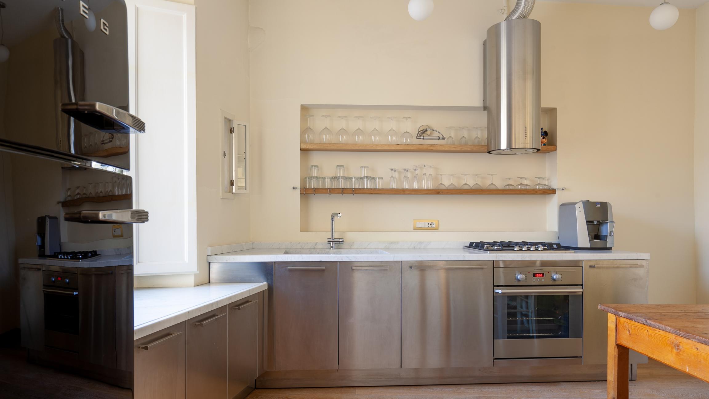 Cucina Gourmet: Una cucina abitabile spaziosa e conviviale, anch’essa affacciata direttamente sulla piazza, completa di comodo ripostiglio/lavanderia.