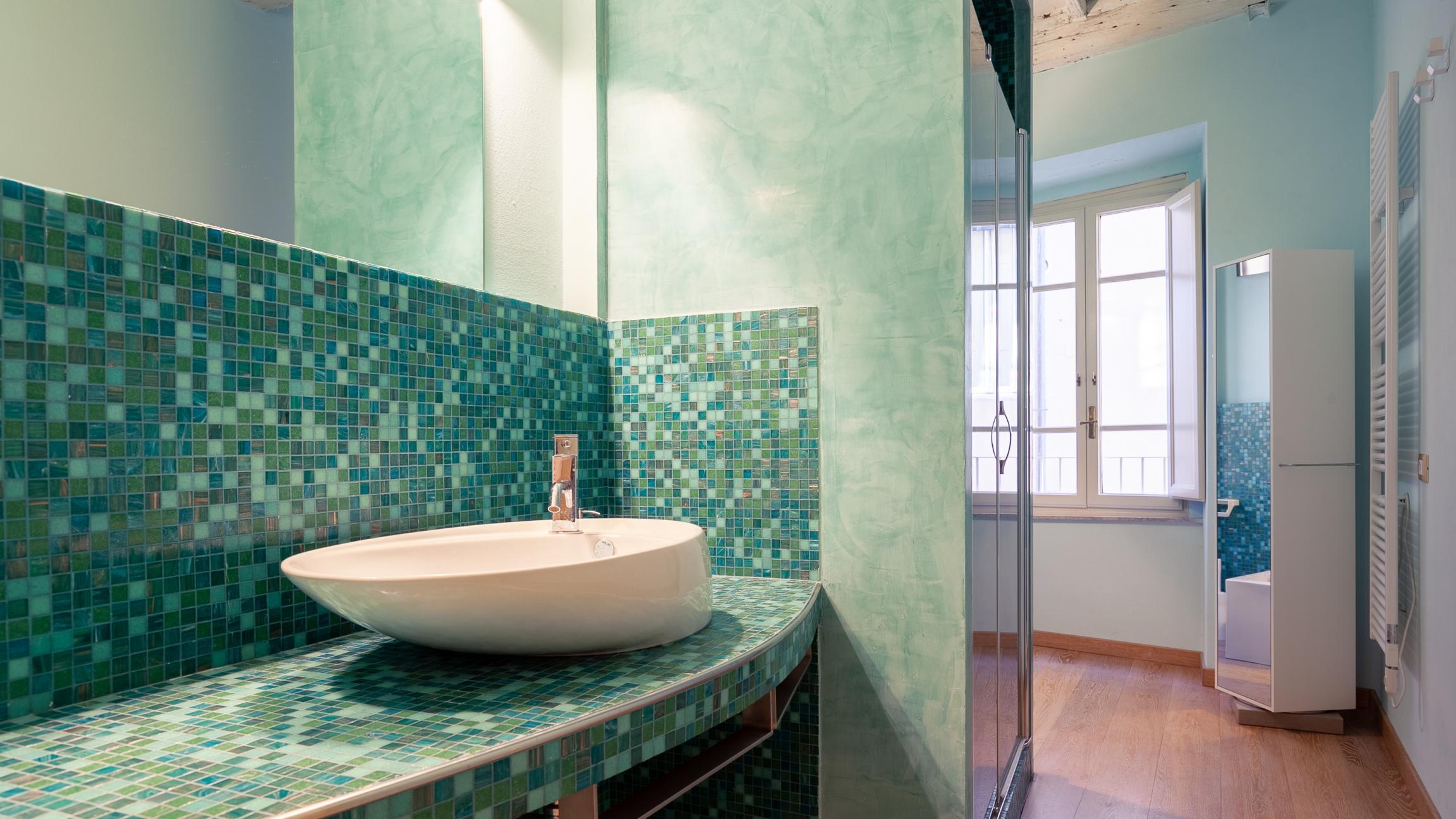 Zona Notte: Un disimpegno conduce alla zona privata composta da una master suite con cabina armadio, una seconda camera matrimoniale e due ampi bagni rivestiti in pregiato mosaico Bisazza.