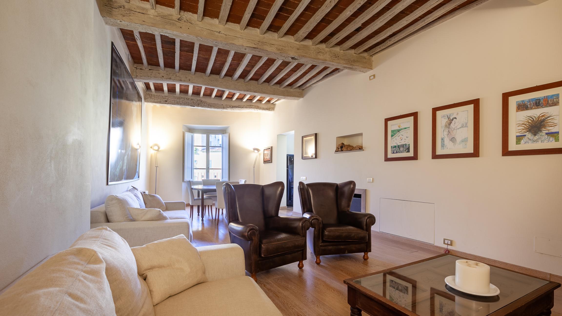 Nel cuore pulsante di Lucca, all'interno di un prestigioso palazzo storico finemente restaurato (loggia e scale incluse), proponiamo un appartamento unico al secondo piano, dove il fascino dell'antico incontra il lusso contemporaneo.
