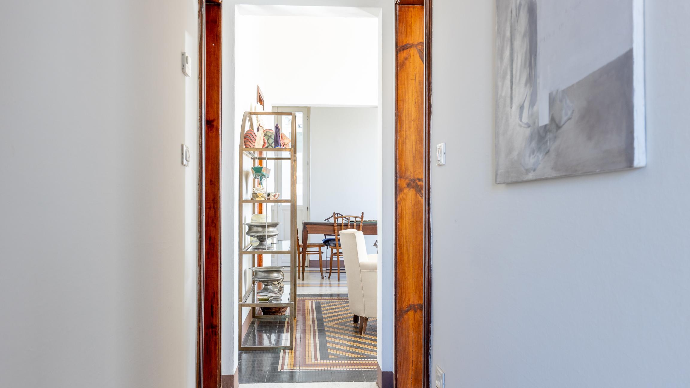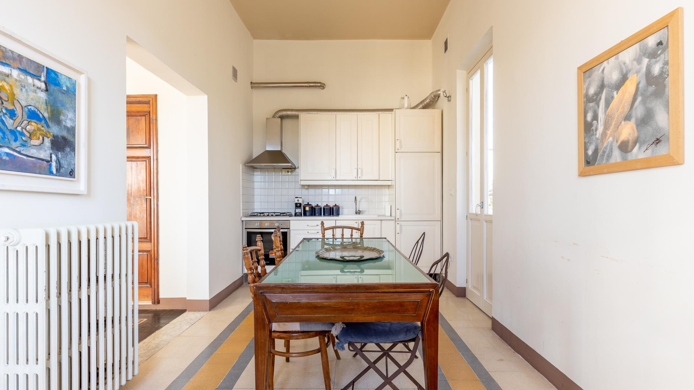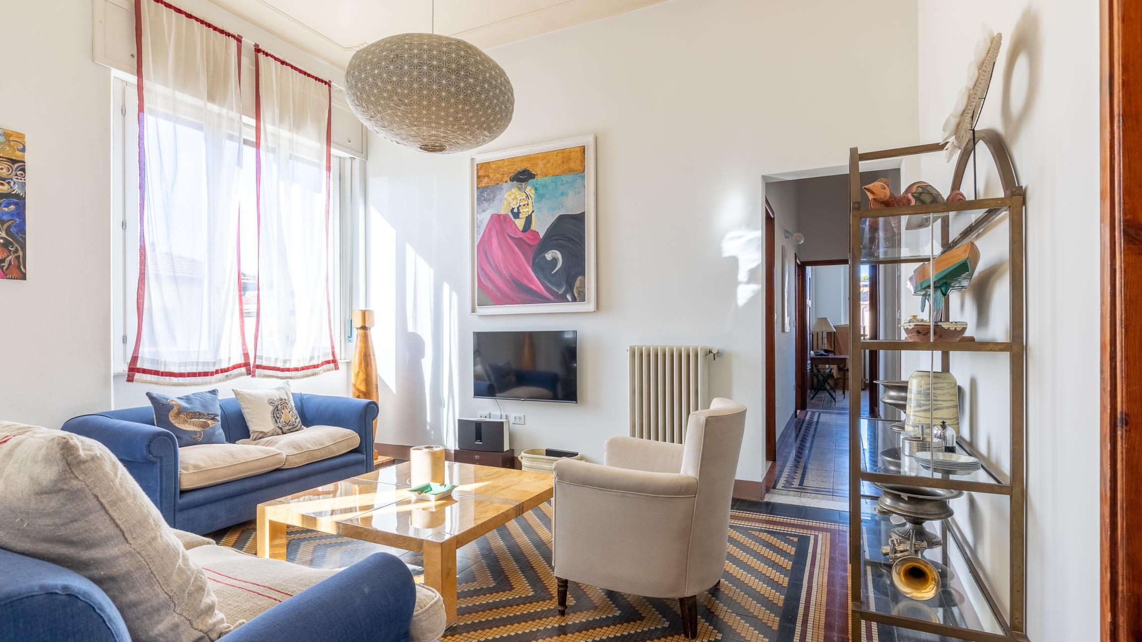 L'appartamento è caratterizzato dai soffitti alti e dai pavimenti caratteristici dell'epoca, oltre alle finestre ampie che si affacciano principalmente a sud.