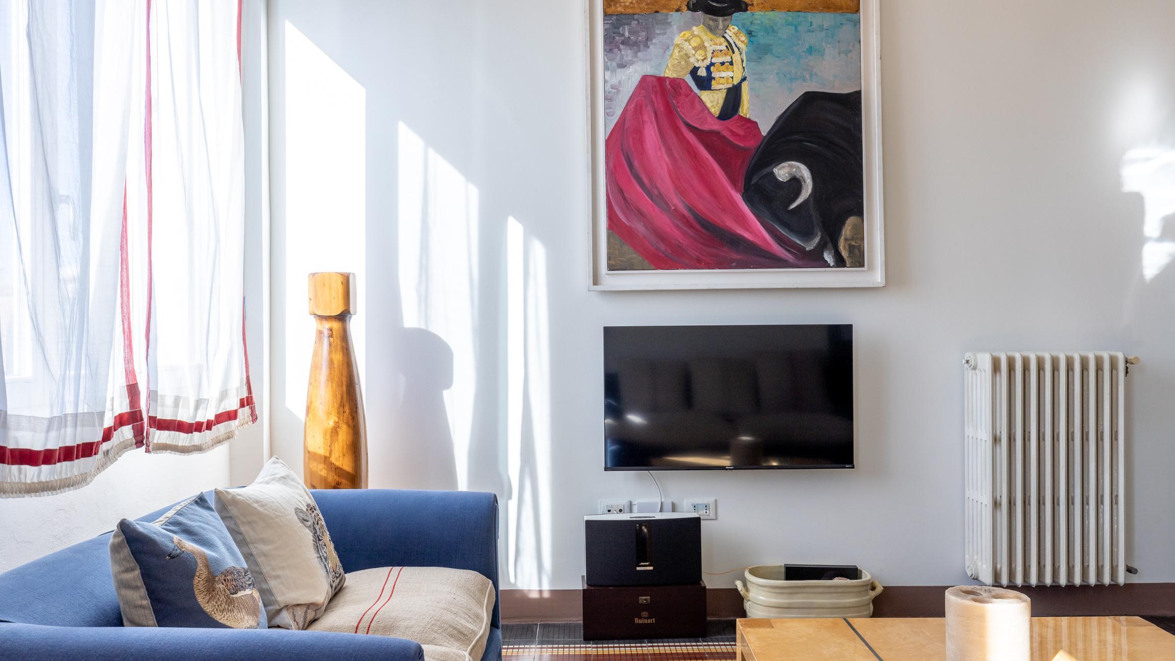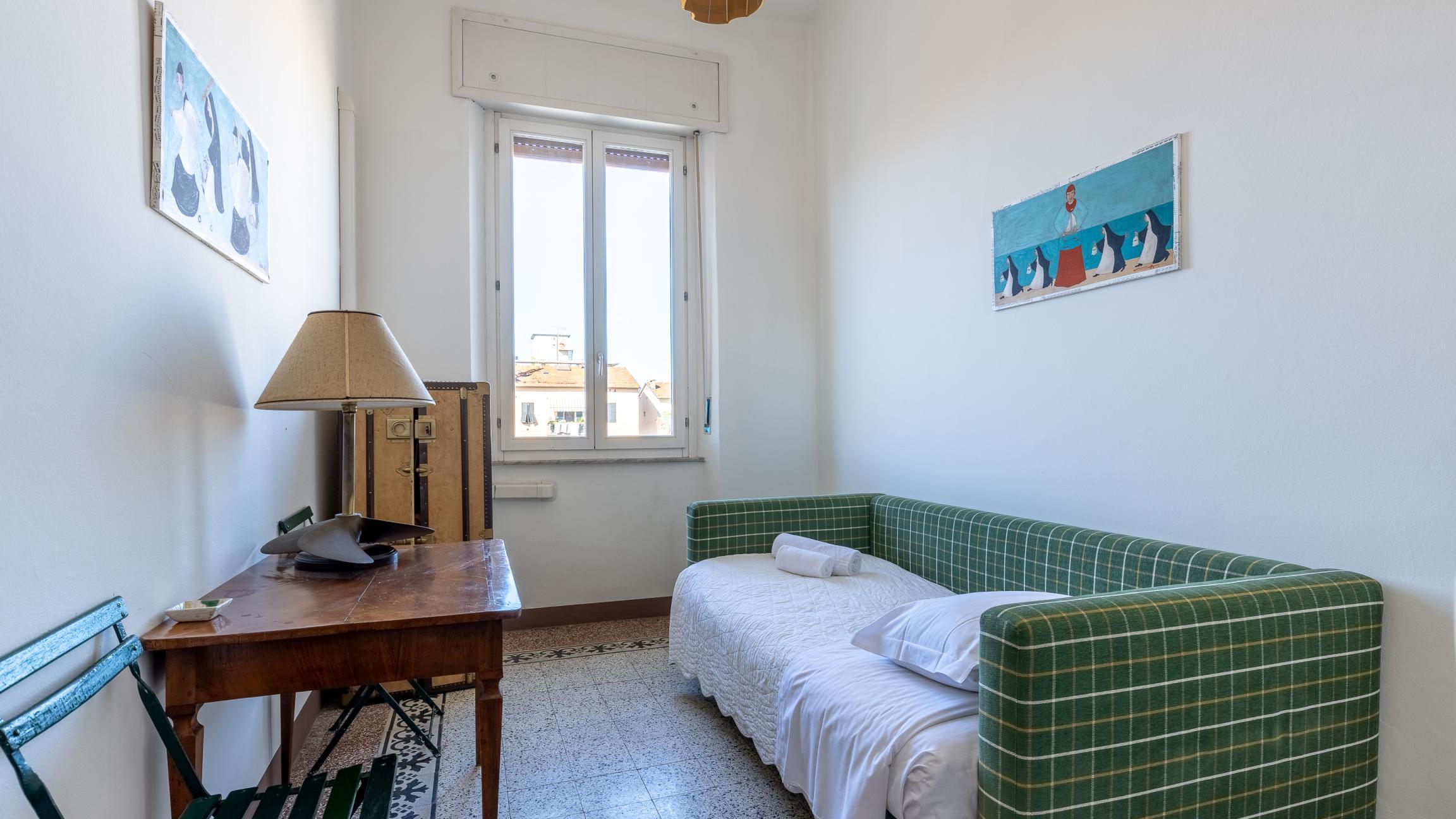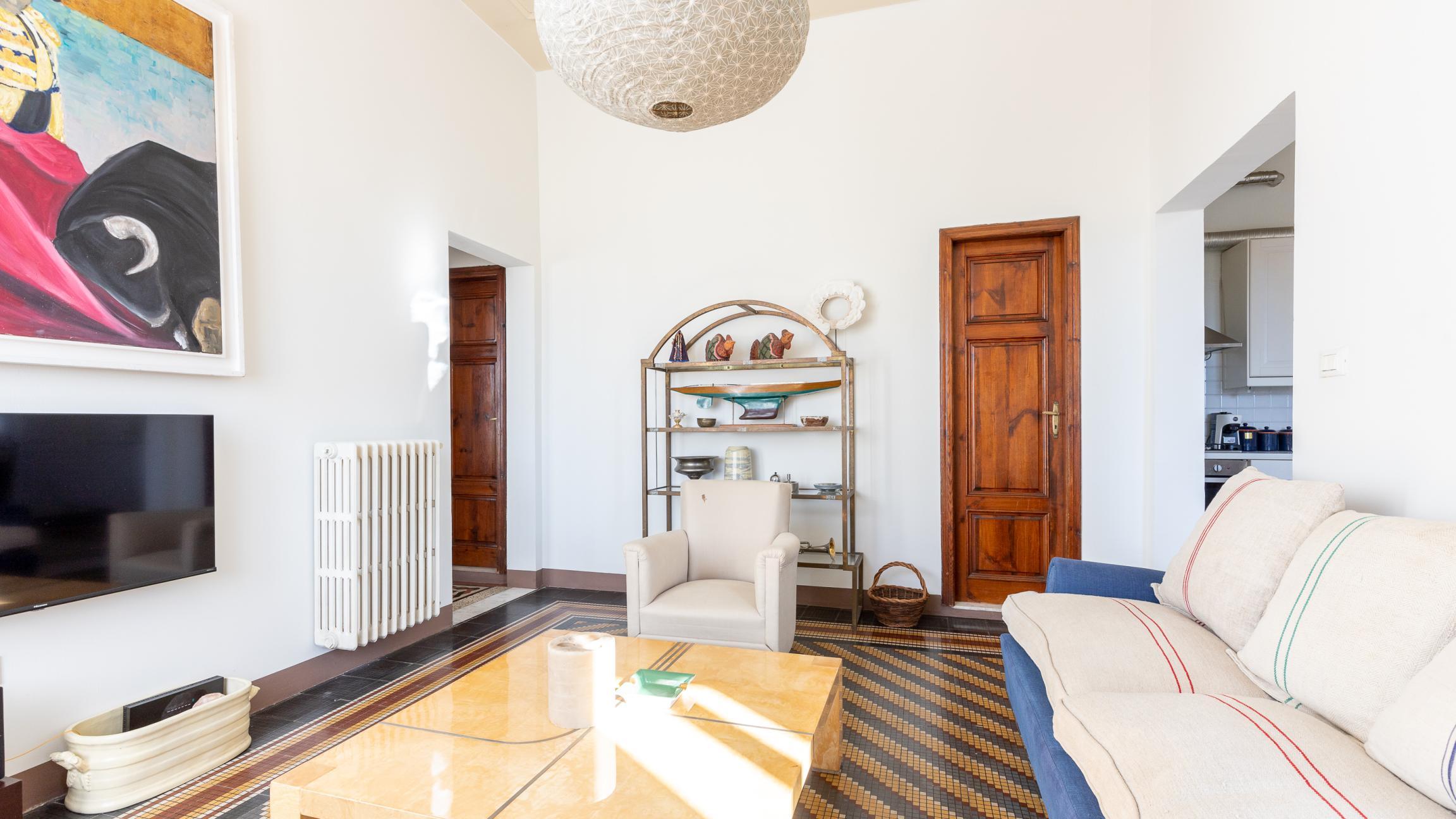 L'appartamento è caratterizzato dai soffitti alti e dai pavimenti caratteristici dell'epoca, oltre alle finestre ampie che si affacciano principalmente a sud.