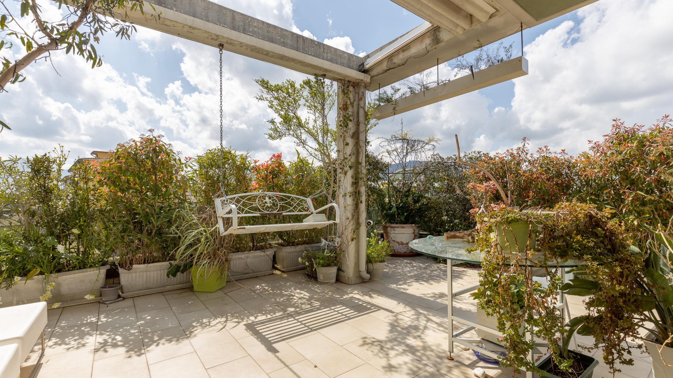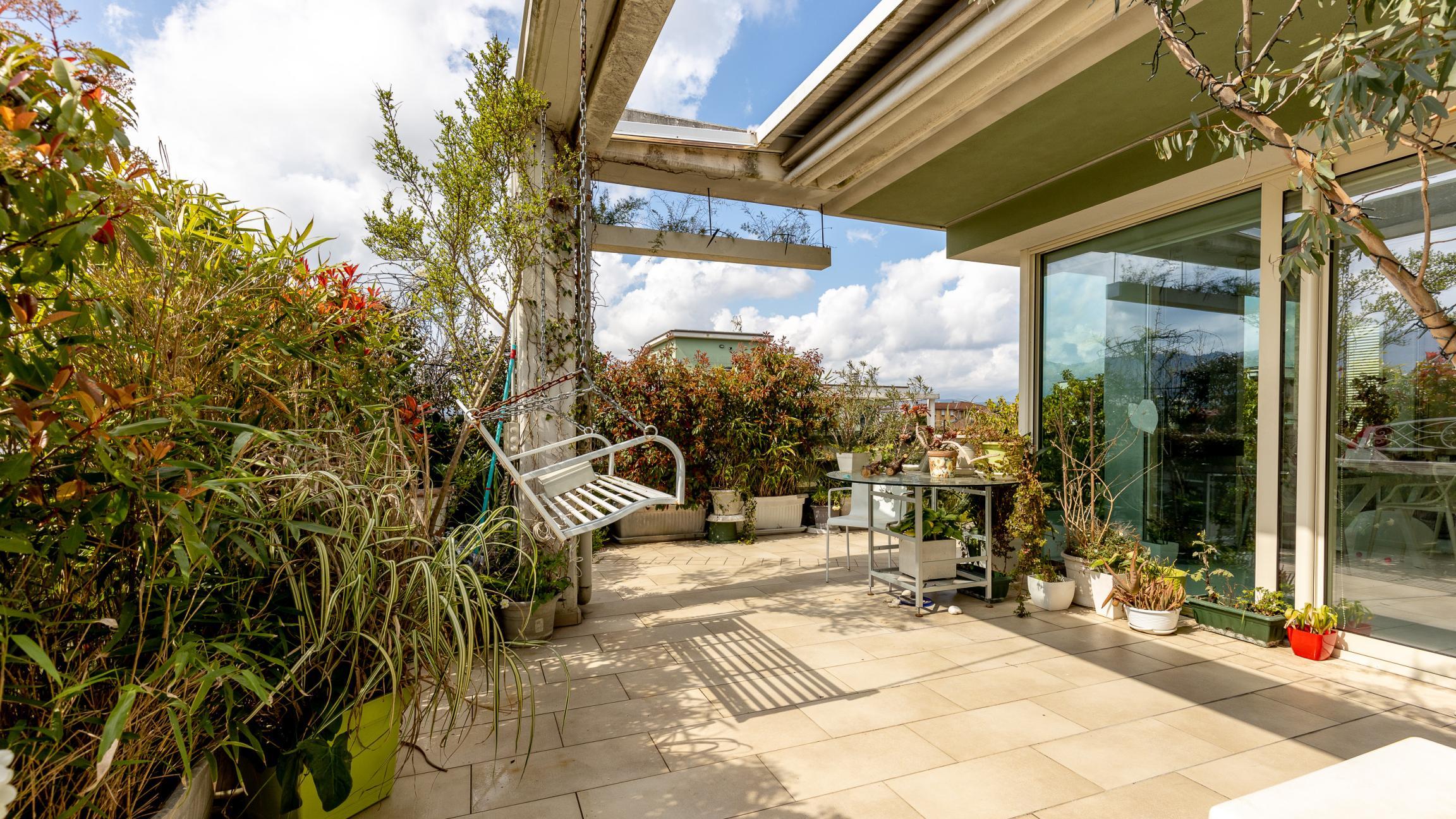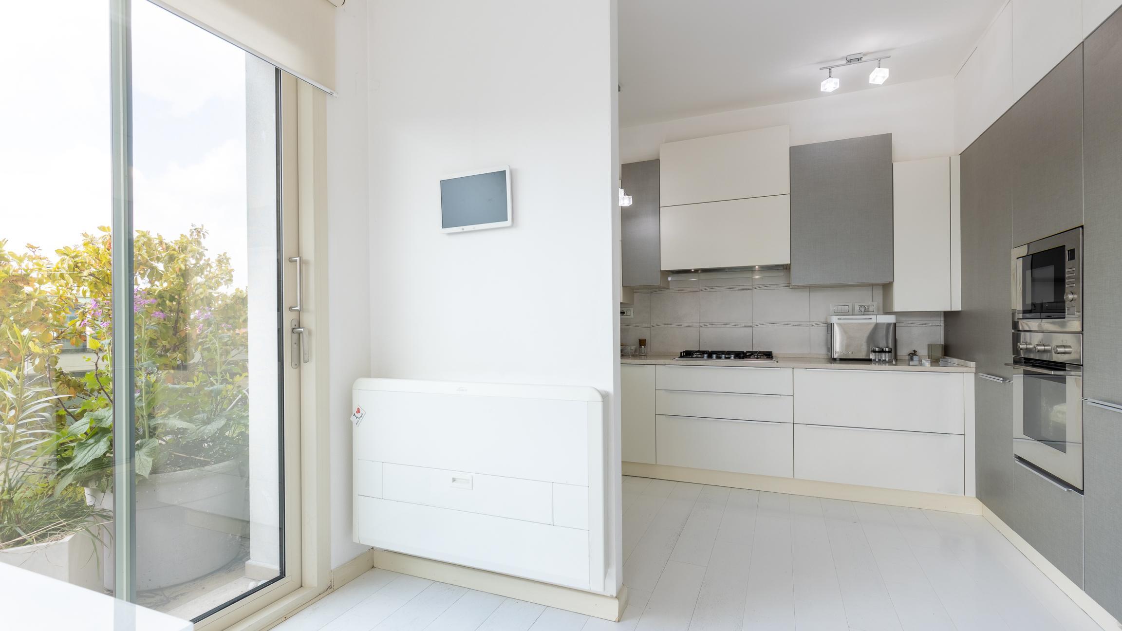 L'appartamento si sviluppa su un unico livello ed è composto da un’ampia zona giorno con cucina open space con accesso diretto alla grande terrazza abitabile che ne circonda i tre lati, ideale per pranzi all’aperto, momenti di relax o per creare una vera e propria zona living esterna.