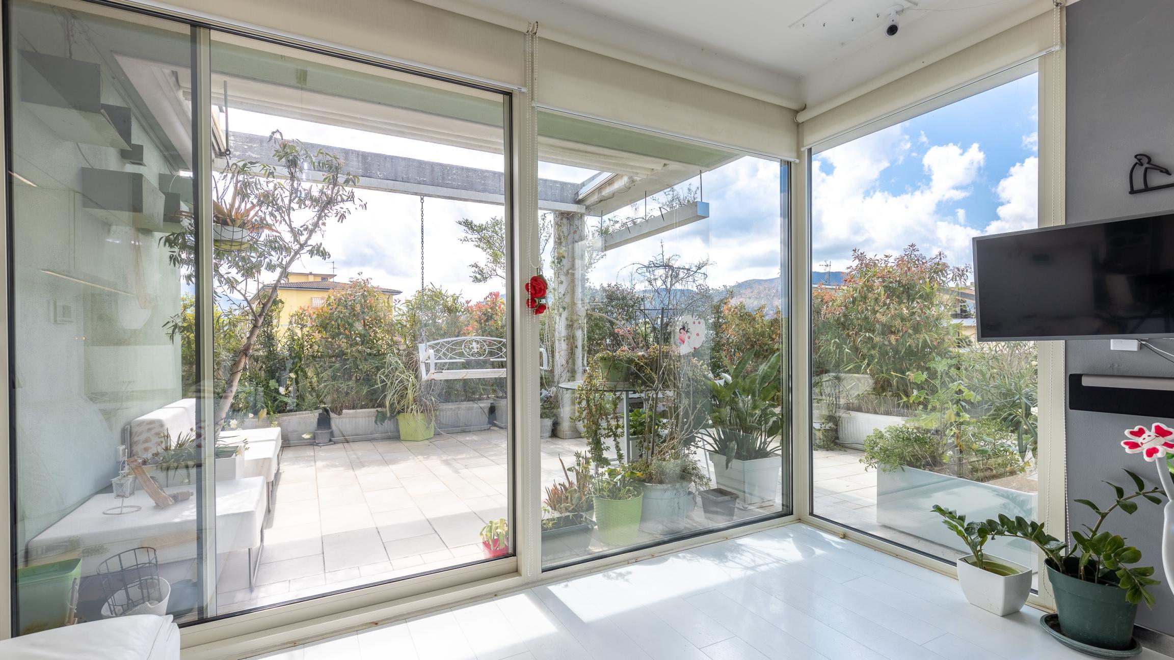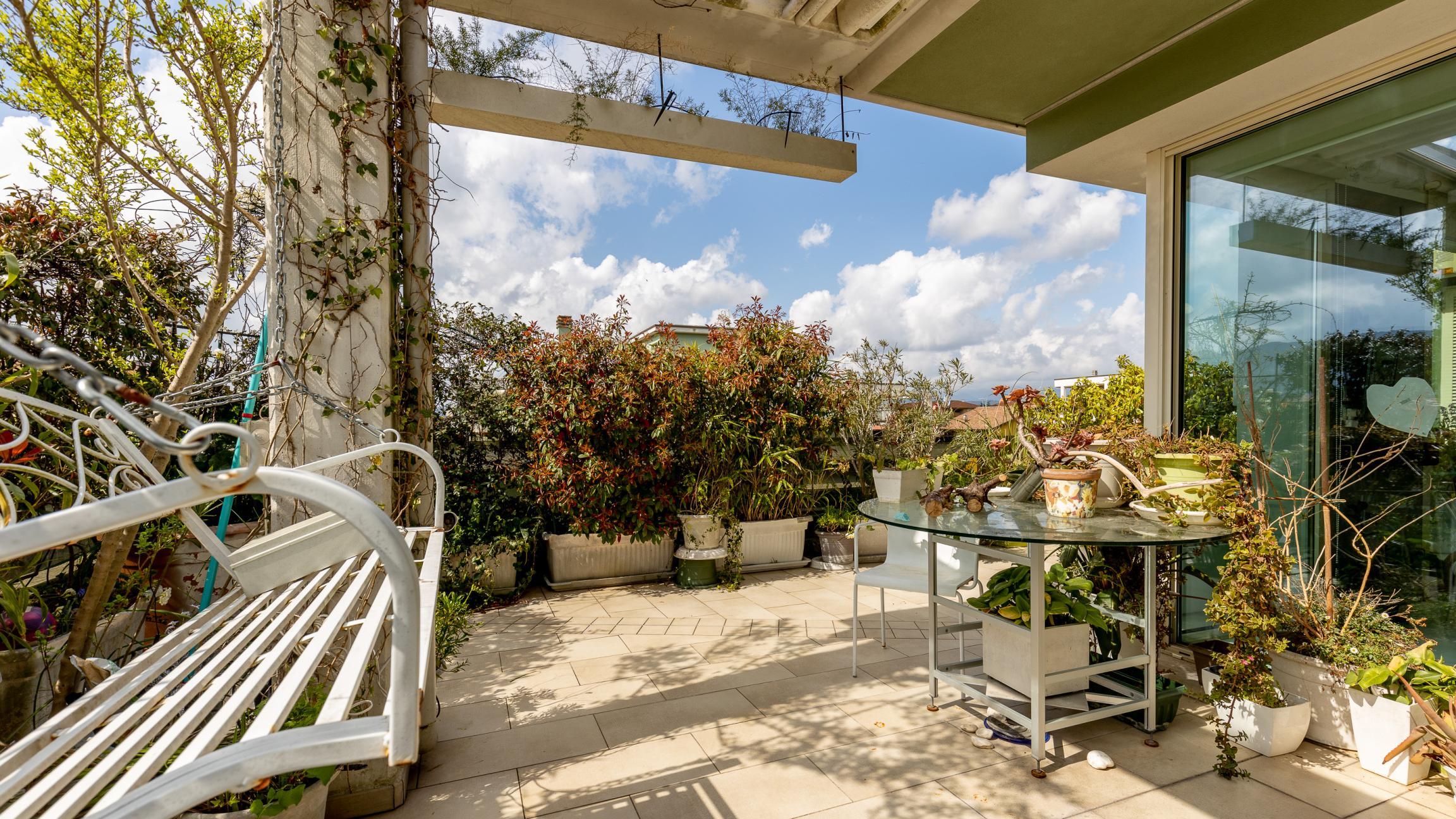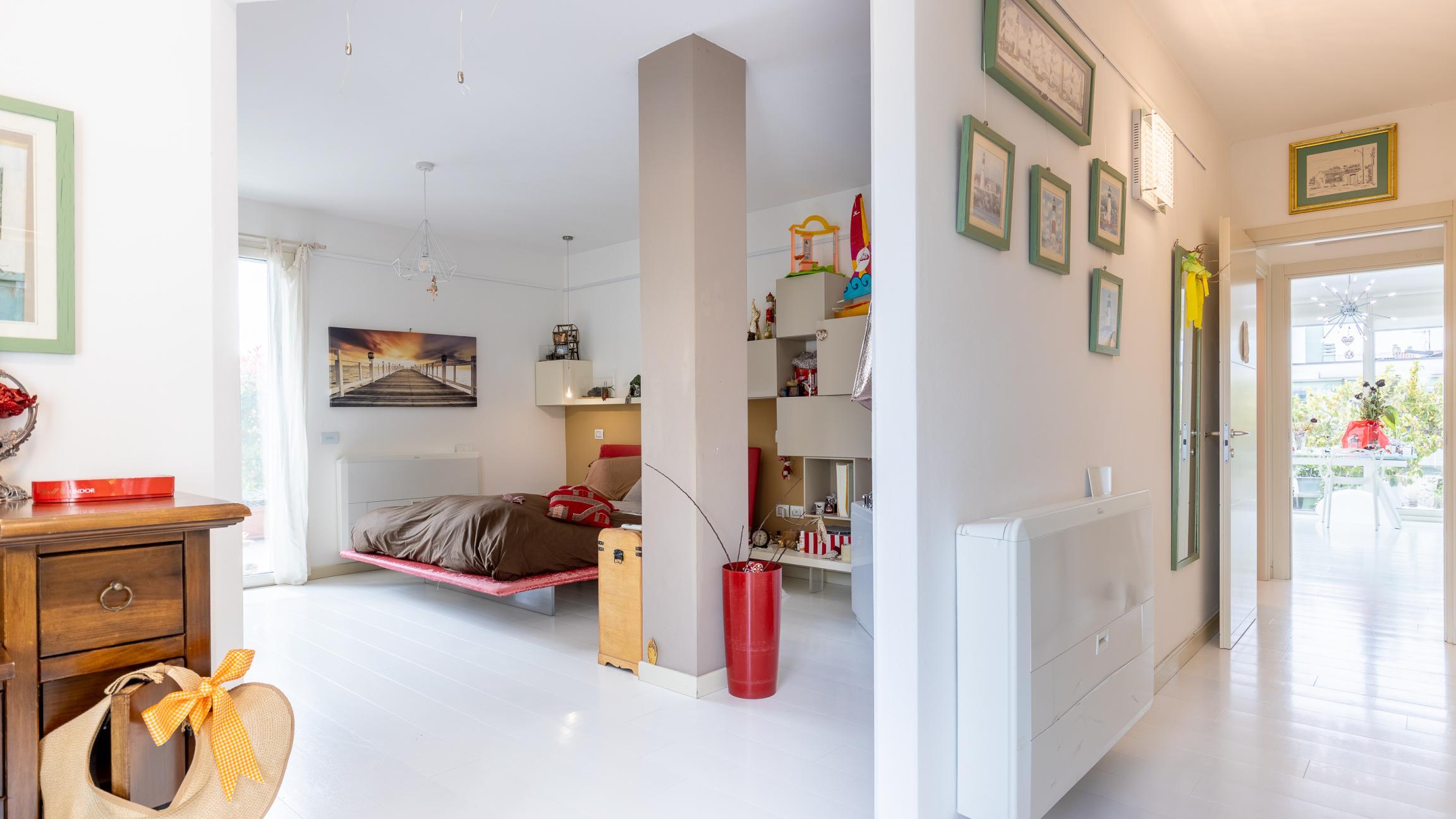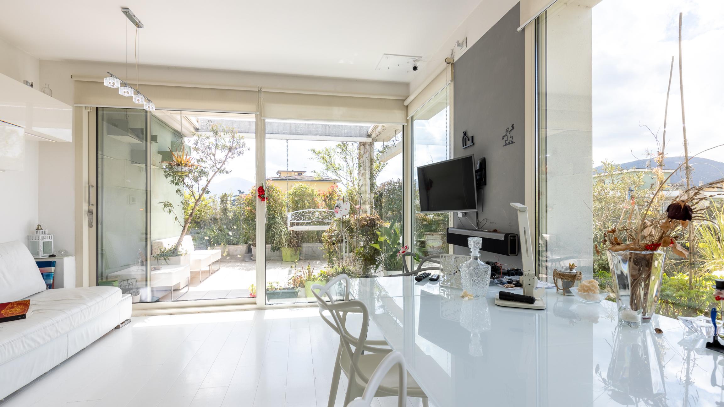 L'appartamento si sviluppa su un unico livello ed è composto da un’ampia zona giorno con cucina open space con accesso diretto alla grande terrazza abitabile che ne circonda i tre lati, ideale per pranzi all’aperto, momenti di relax o per creare una vera e propria zona living esterna.
