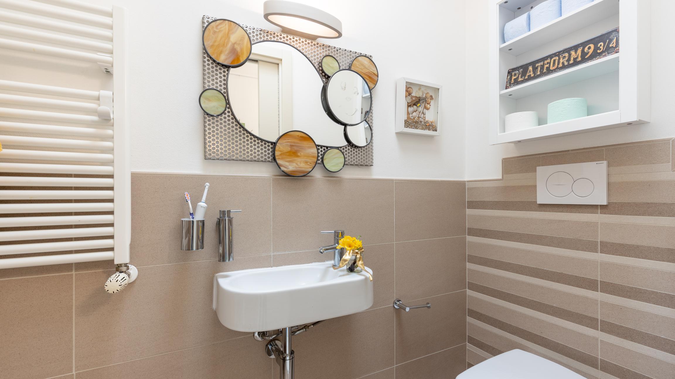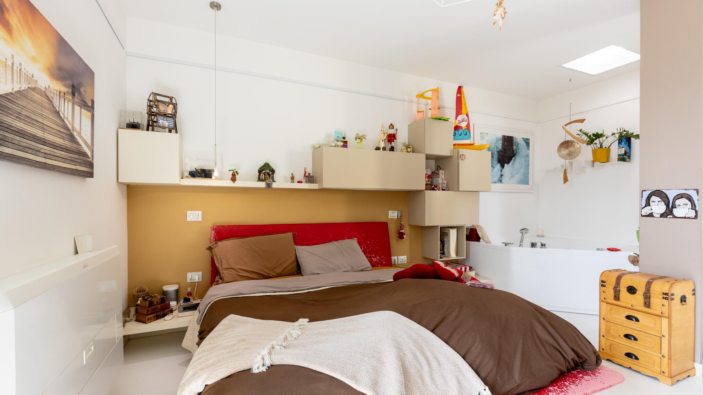 La zona notte comprende una camera matrimoniale con bagno privato en suite con doccia e vasca idromassaggio; una seconda camera e un secondo bagno.
