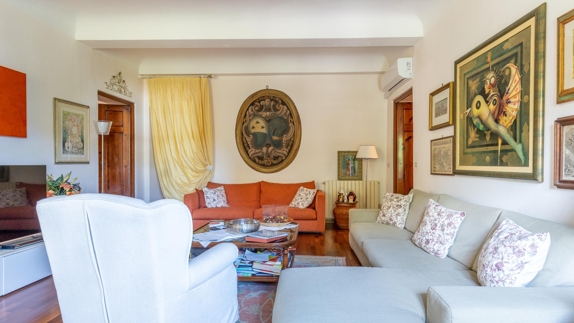 La proprietà, grazie alla distribuzione degli spazi, si presta perfettamente anche per essere abitata da due nuclei familiari distinti, offrendo ampi ambienti, privacy e una cornice storica di grande fascino.