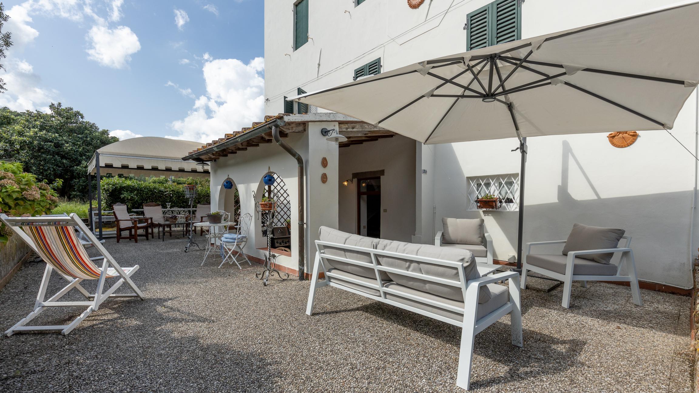 Giardino privato pianeggiante di circa 4.000 mq, perfetto per momenti di relax, cene all’aperto o per installare una piscina