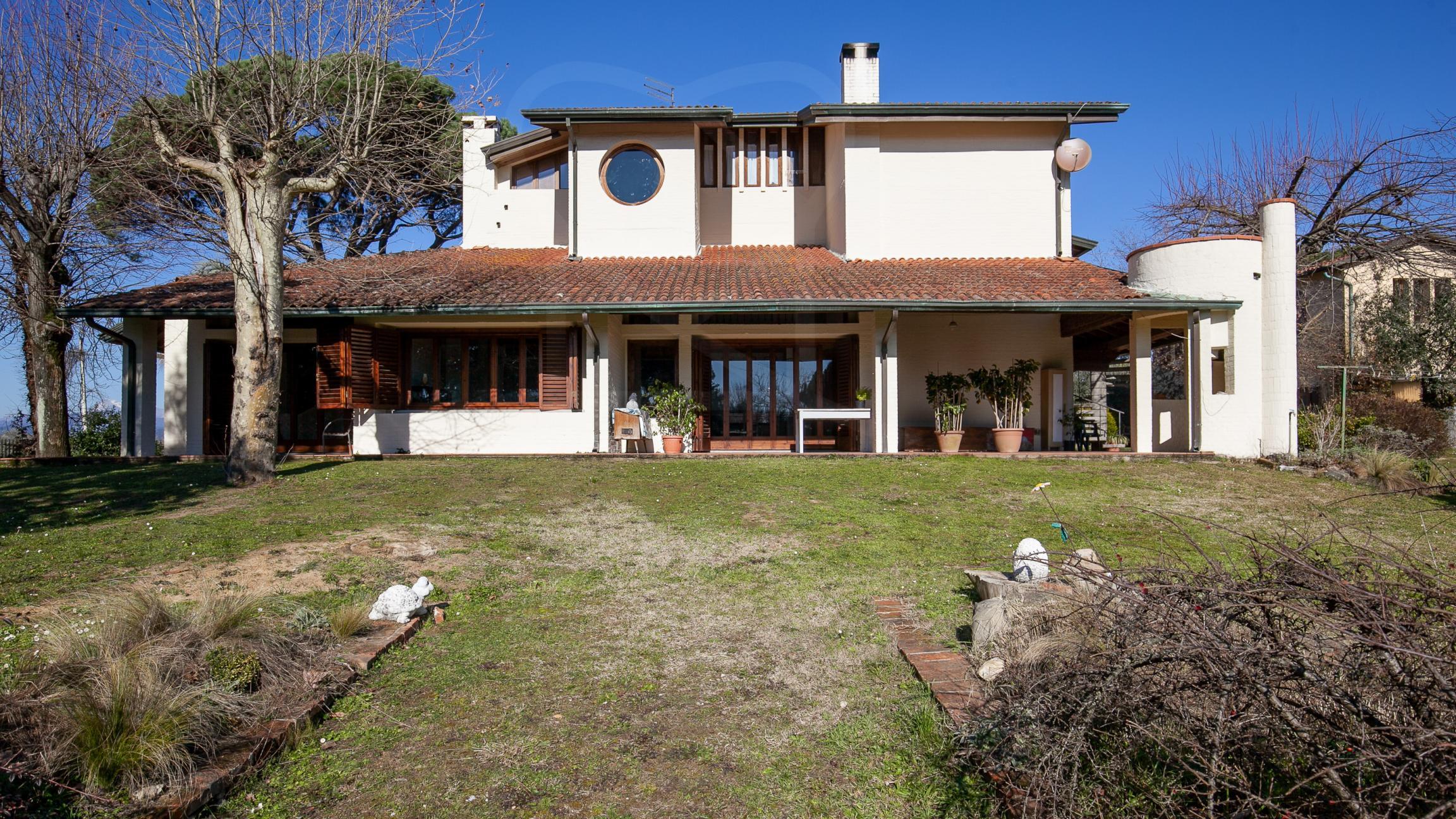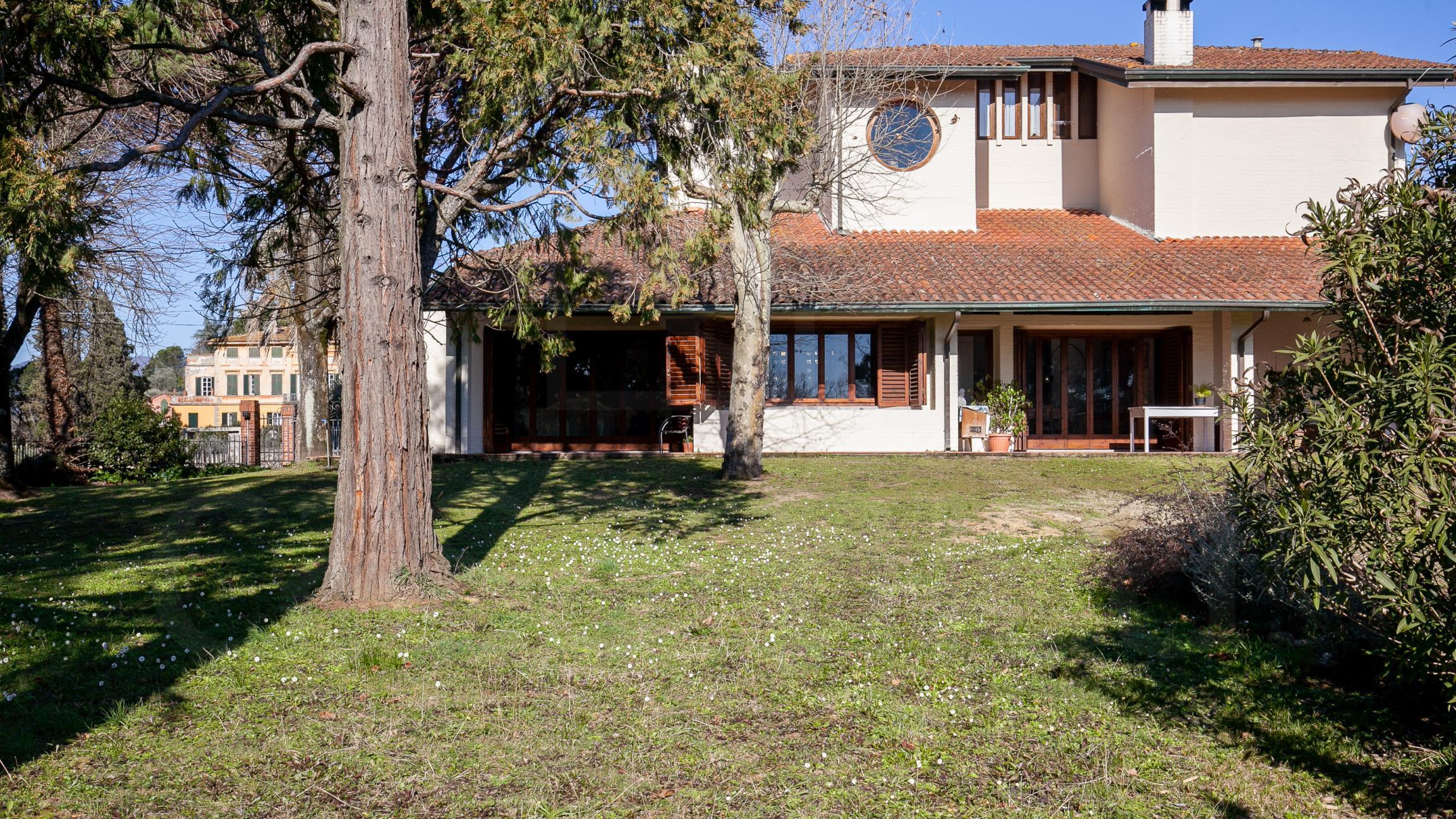Siamo a Lucca, nella frazione di Gragnano a pochi km dalla città immersa nel parco privato di 4.000 mq vicino ai principali servizi, villa di particolare architettura ristrutturata sotto la direzione di un noto architetto negli anni '70 mantenendo un suo carattere elegante e minimalista con ampi spazi da vivere.
