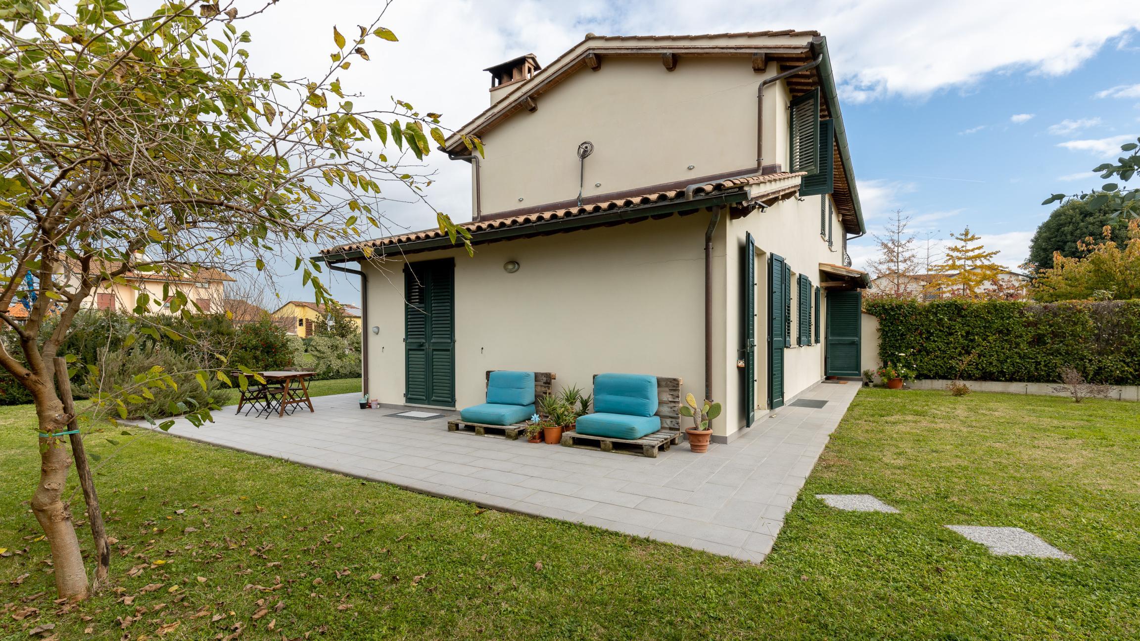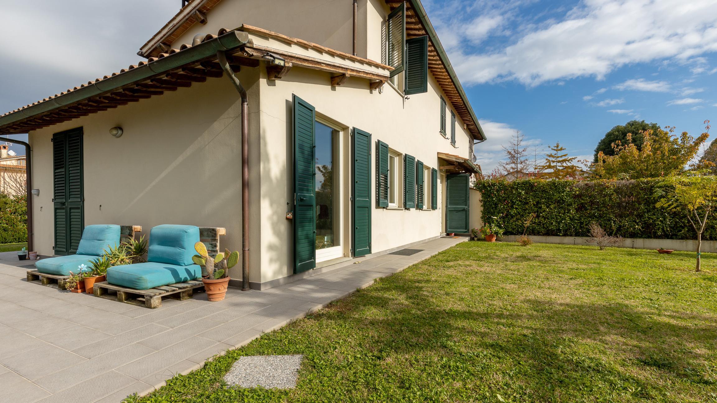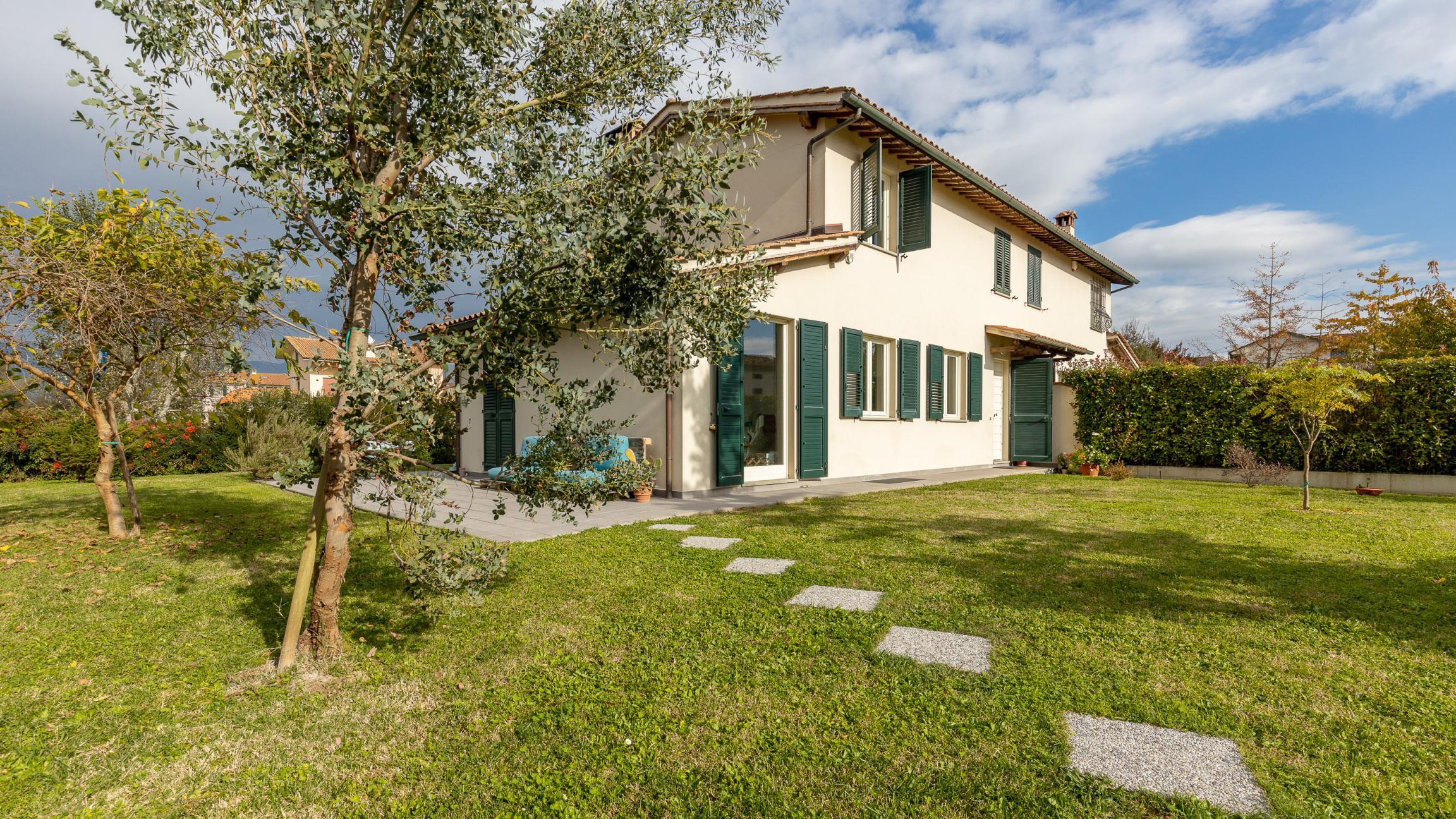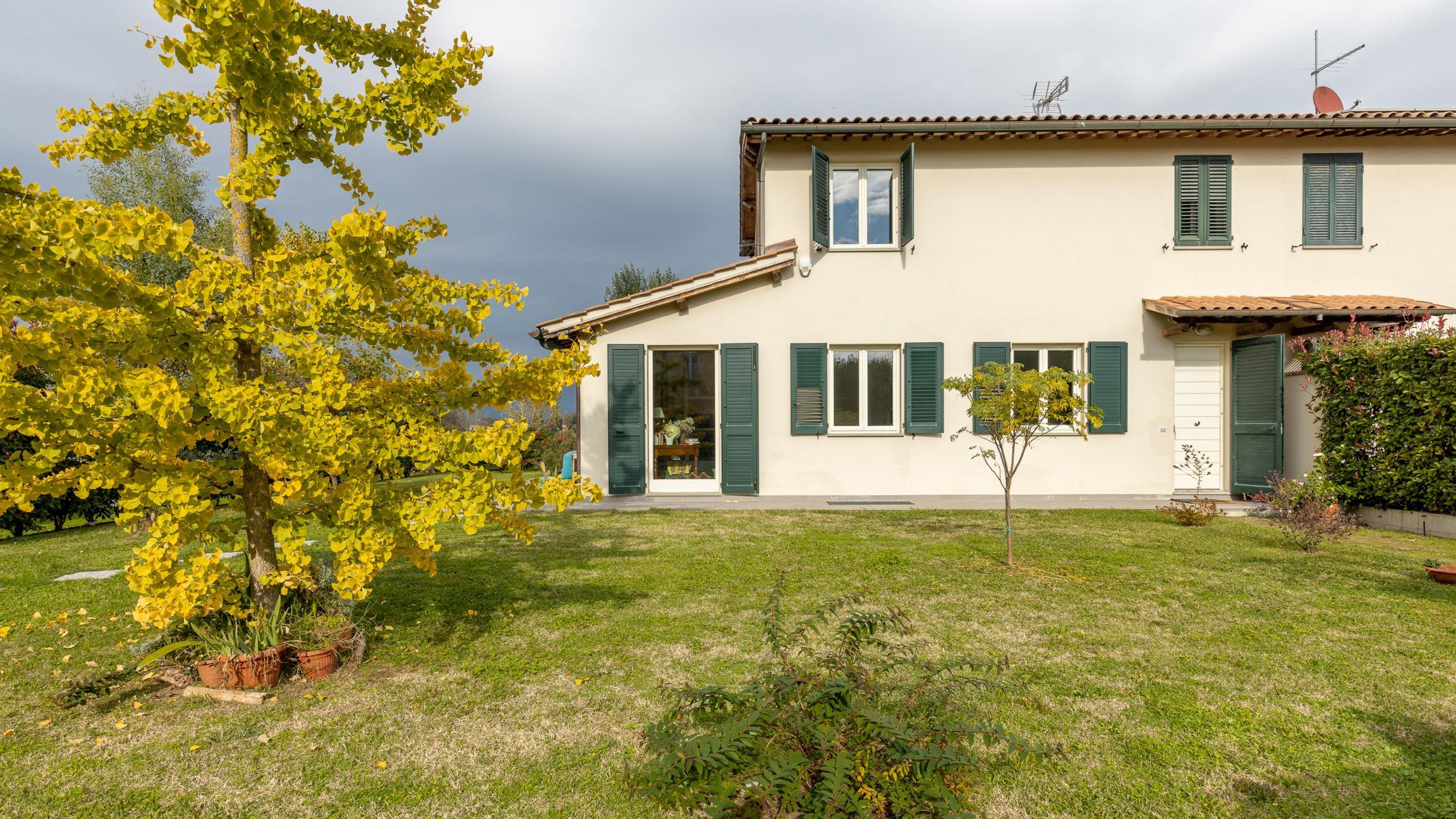 Spaziosa villa bifamiliare con giardino su tre lati di circa 800mq, situata nella zona est di Lucca a circa 5 km dal centro storico, in zona tranquilla e ben servita.