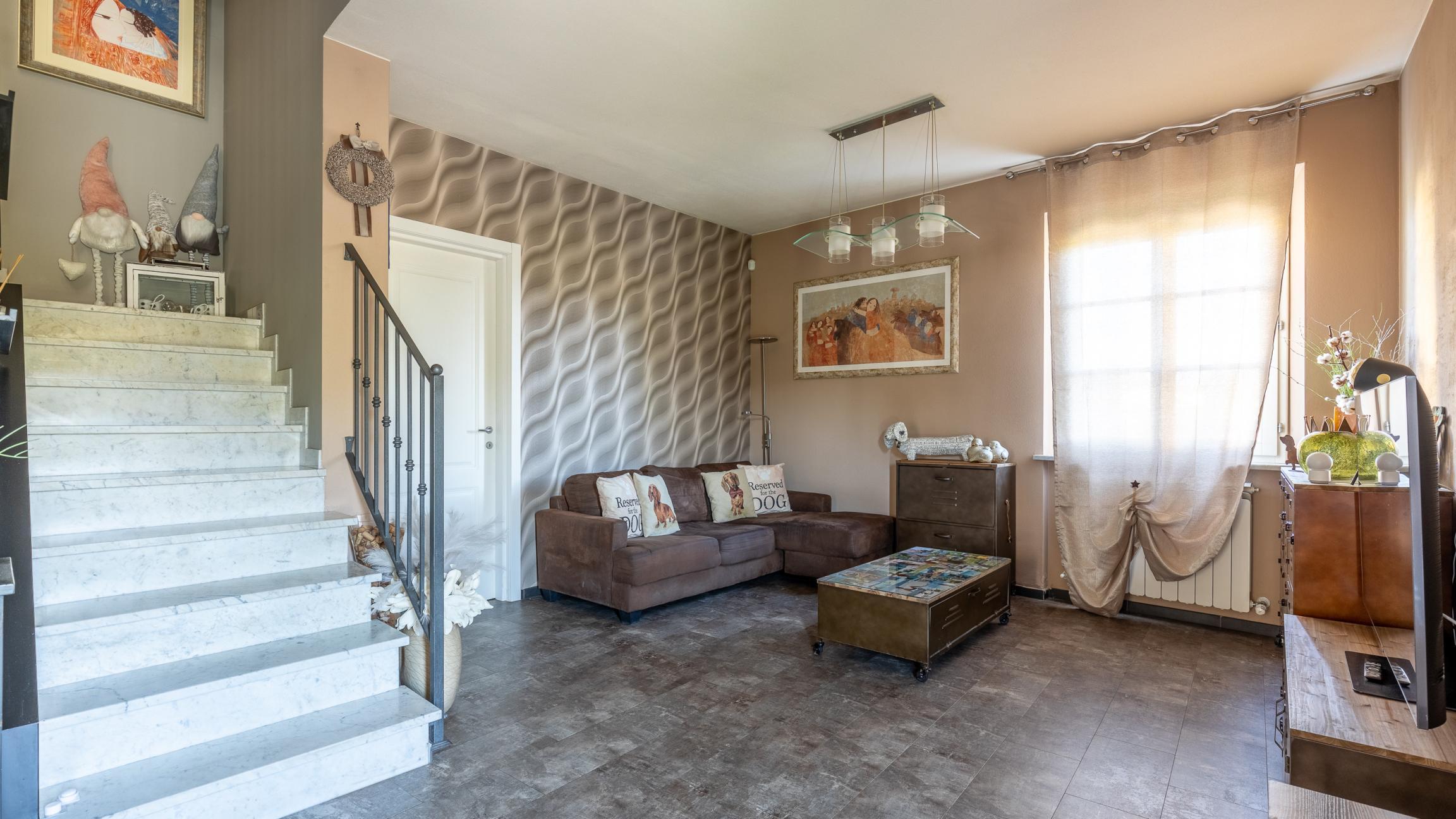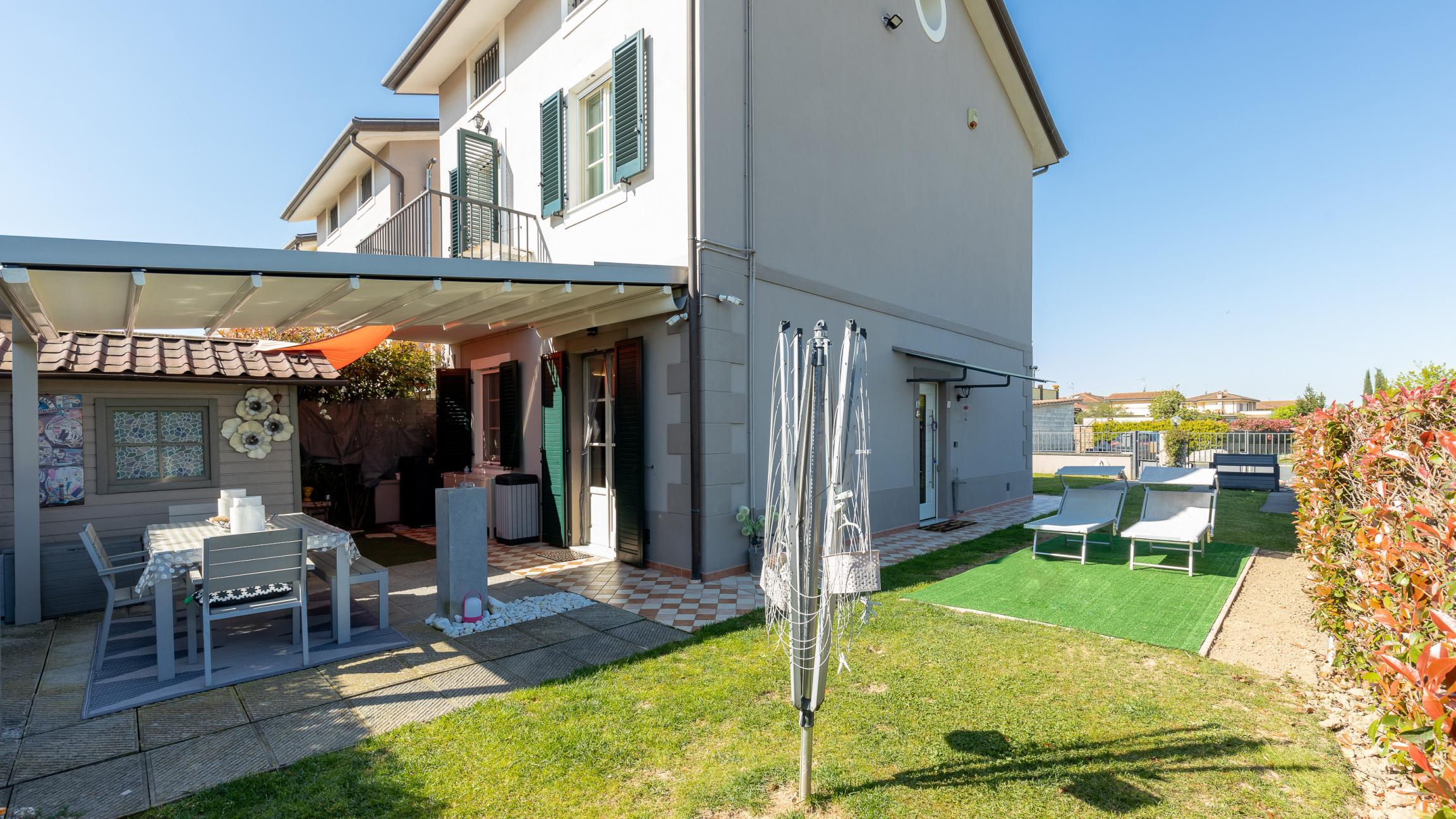 in strada privata villetta a schiera finale divisa dal garage. La villetta è in perfette condizioni ed è sviluppata su due piani oltre mansarda. A piano terra troviamo un bel soggiorno, e una cucina abitabile con ripostiglio, antibagno e bagno. Dalla cucina c'è l'accesso al giardino ben organizzato con lo spazio per le cene sotto un bel pergolato con copertura automatizzata. Al piano primo troviamo due camere di cui una con vano armadi ed entrambi con terrazzo, e rip. nel disimpegno , al piano mansarda troviamo due vani e bagno. La casa dispone di impianto fotovoltaico, aria condizionata, impianto allarme, acquedotto e pozzo. Perfette condizioni, zona molto interessante, semindipemdente, spazi ben organizzati.