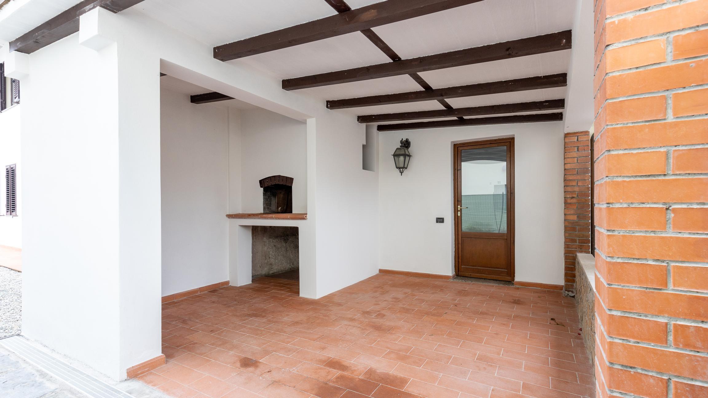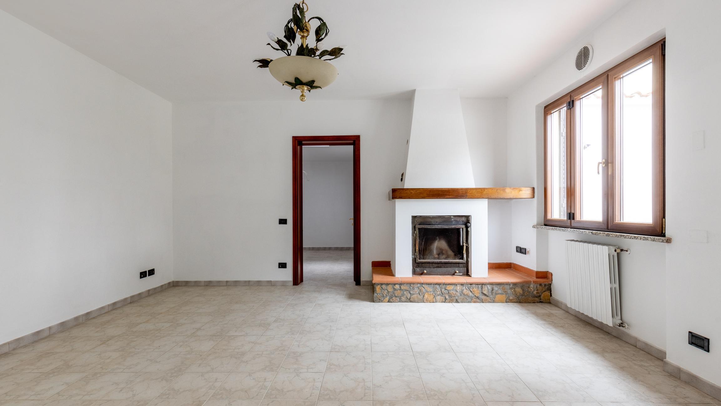 L’abitazione si articola al piano terra con ingresso su un ampio e luminoso soggiorno, impreziosito da caminetto, affiancato da una cucina abitabile che si apre direttamente su un generoso porticato coperto, ideale per pranzi e cene all’aperto, dotato di forno a legna perfettamente funzionante. Completano il livello un bagno con doccia, un locale tecnico e un vano polifunzionale, adatto a essere adibito a studio o camera per gli ospiti.