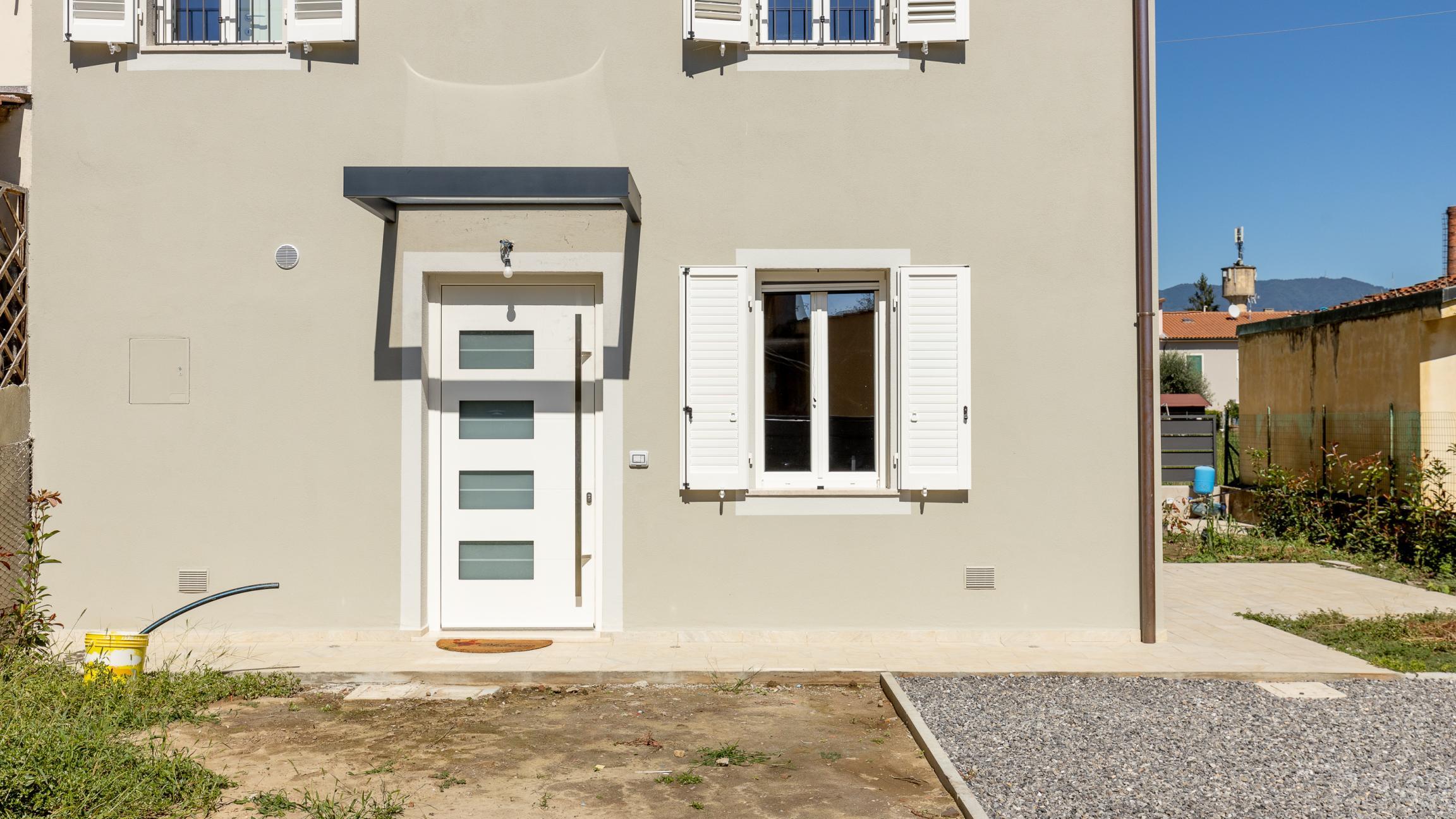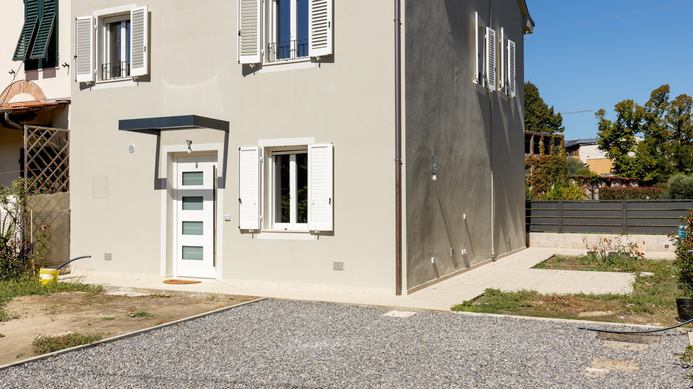 In una delle zone più residenziali di Lucca, proponiamo in vendita una villetta a schiera appena ristrutturata, con una superficie di circa 180 mq, disposta su due livelli oltre al piano terreno. La proprietà è caratterizzata da un'ottima efficienza energetica (Classe B), ambienti luminosi e finiture moderne. L’ingresso alla villetta avviene tramite passo carrabile e pedonale privati, che conducono a un’area a giardino e a posti auto scoperti all’interno della proprietà.
