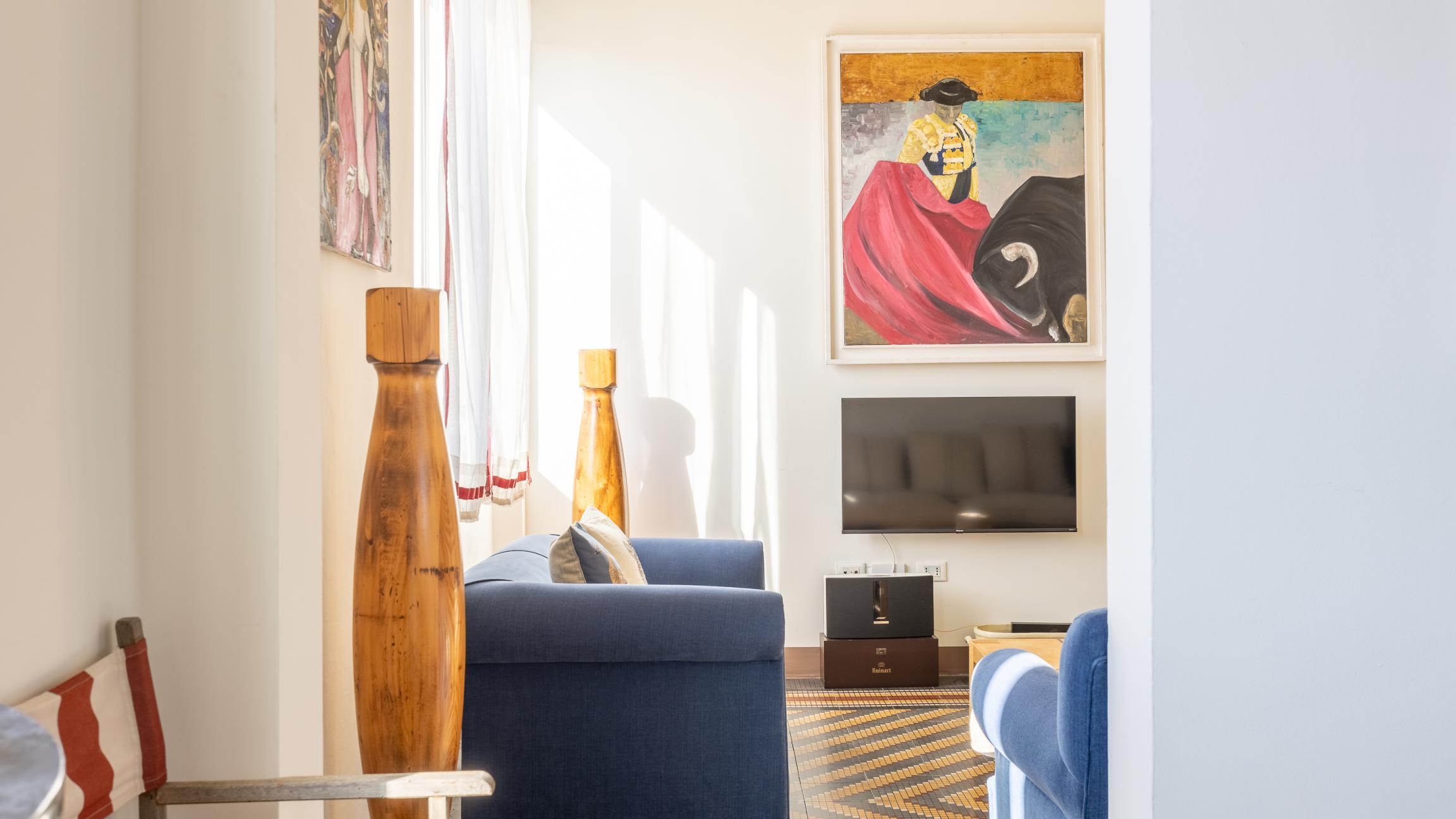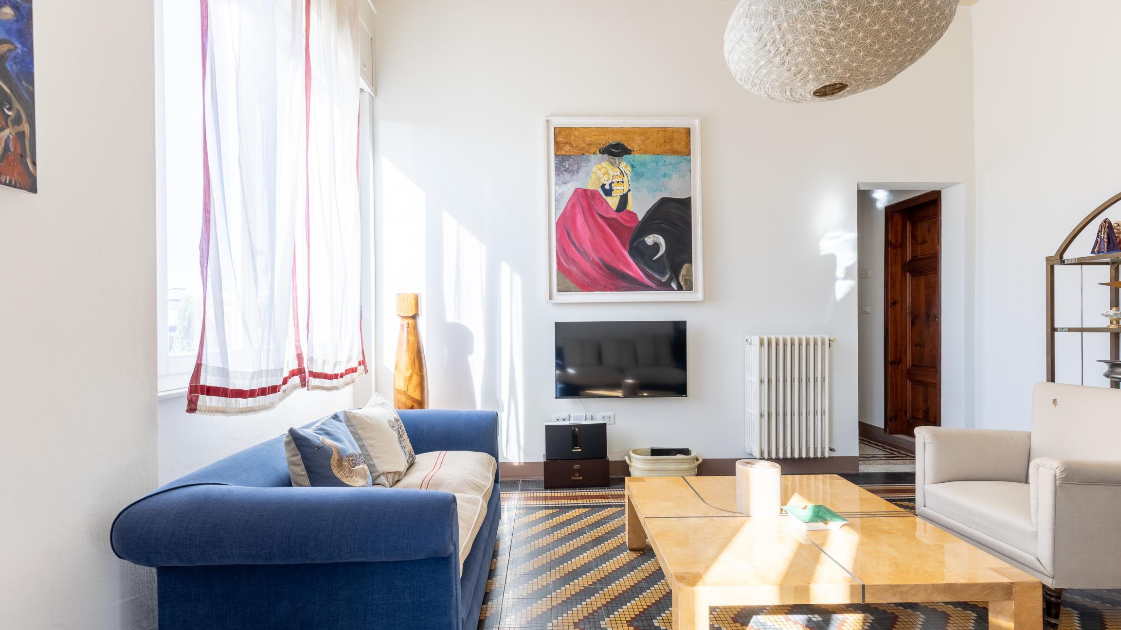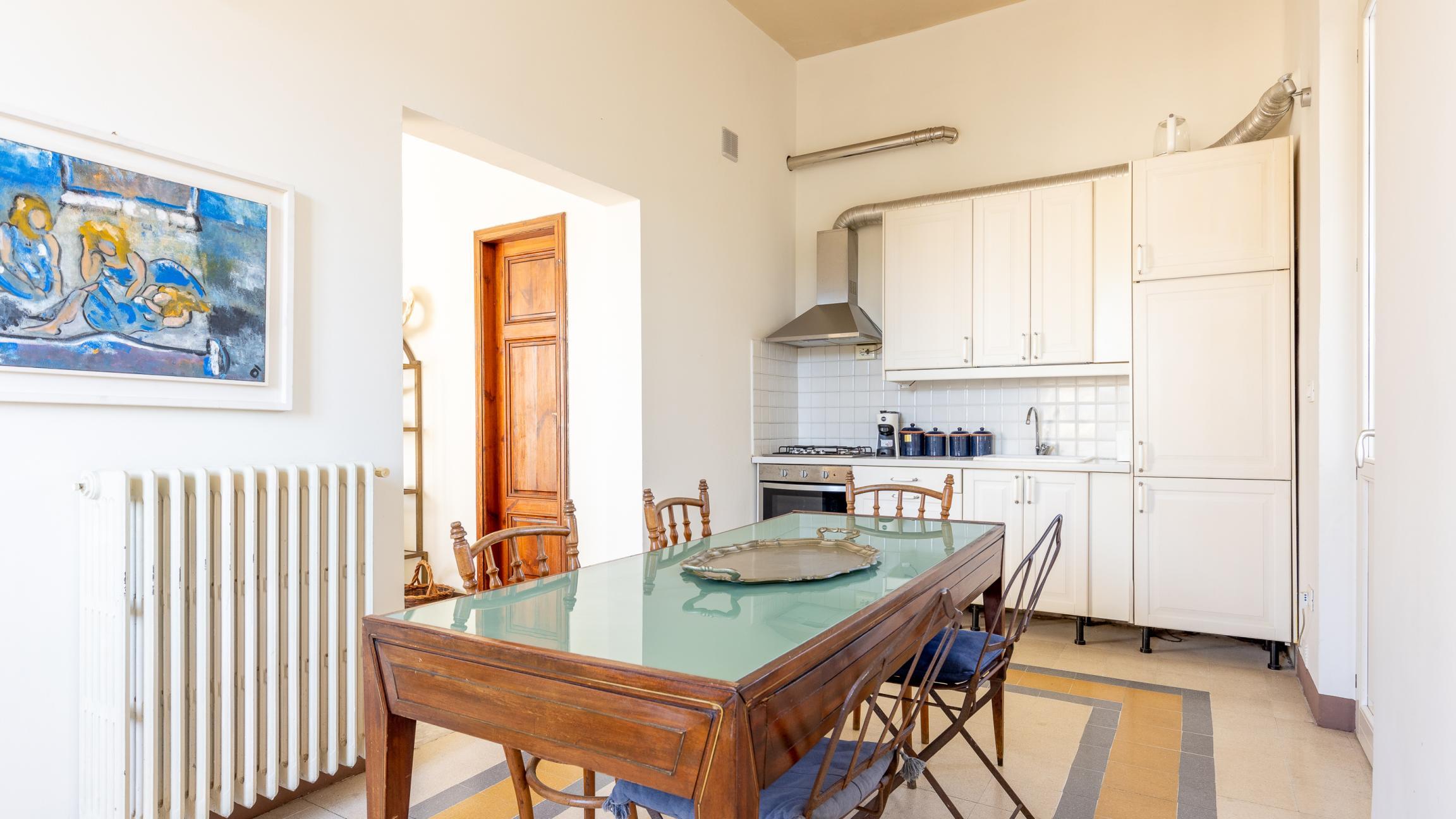 L'appartamento è caratterizzato dai soffitti alti e dai pavimenti caratteristici dell'epoca, oltre alle finestre ampie che si affacciano principalmente a sud.