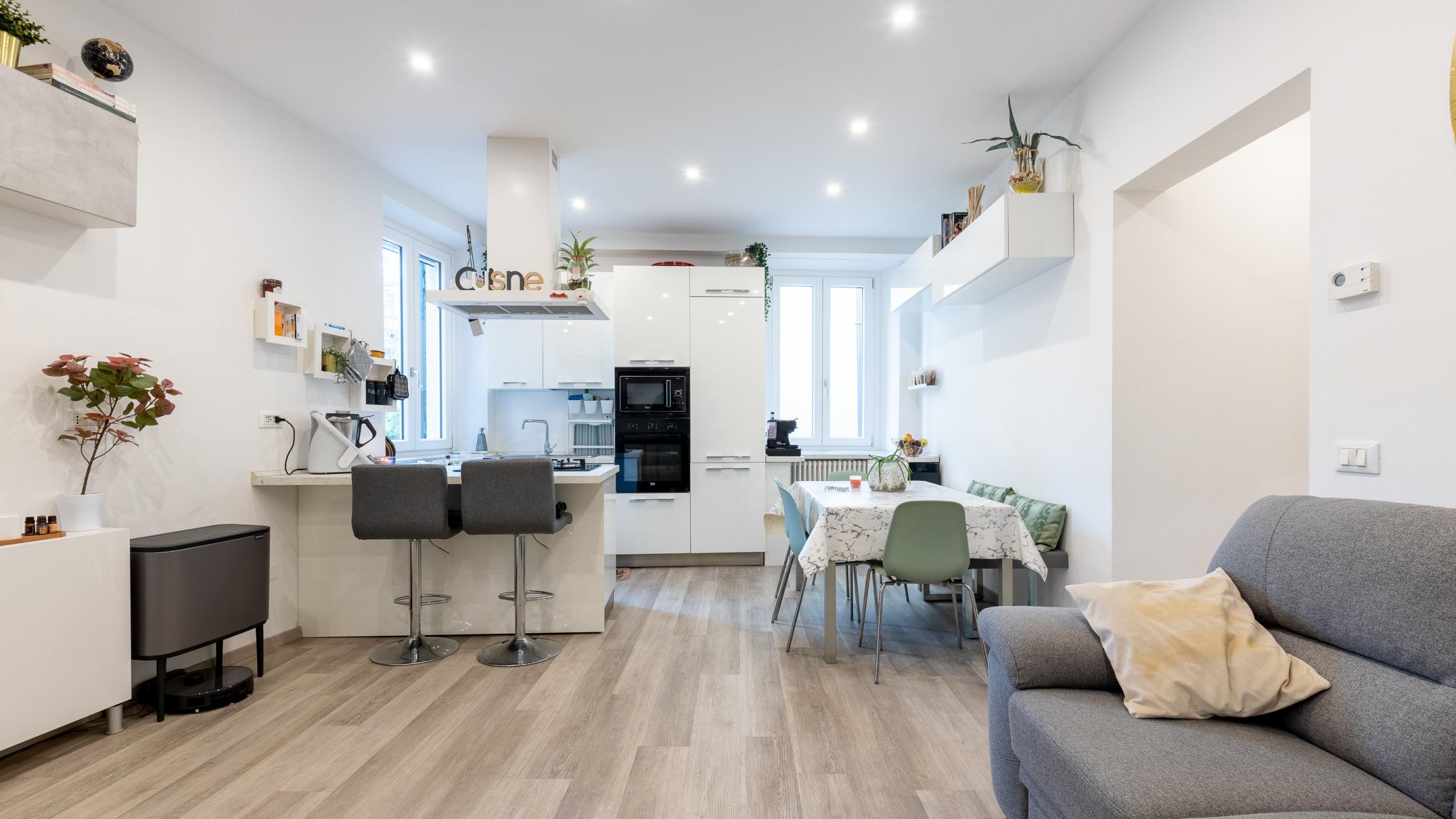 in palazzo di sole tre unità appartamento al secondo piano completamente ristrutturato nel 2021 di 145mq circa .Entrando abbiamo un'ottimo impatto in quanto troviamo un'ambiente open space con la zona soggiorno pranzo e la cucina tutto a vista con molta luce e con ottimi affacci, un disimpegno ci conduce alla zona notte dove troviamo 3 camere di cui una con cabina armadi e due bagni entrambi con finestra , dalla zona giorno tramite una piccolo disimpegno arriviamo ad grazioso studio/veranda con affaccio su un piccolo terrazzo. Infine sul vano scale troviamo a corredo un comodo e spazioso ripostiglio . L'appartamento viene venduto completamente arredata o solo con cucina. Pronto per abitare.