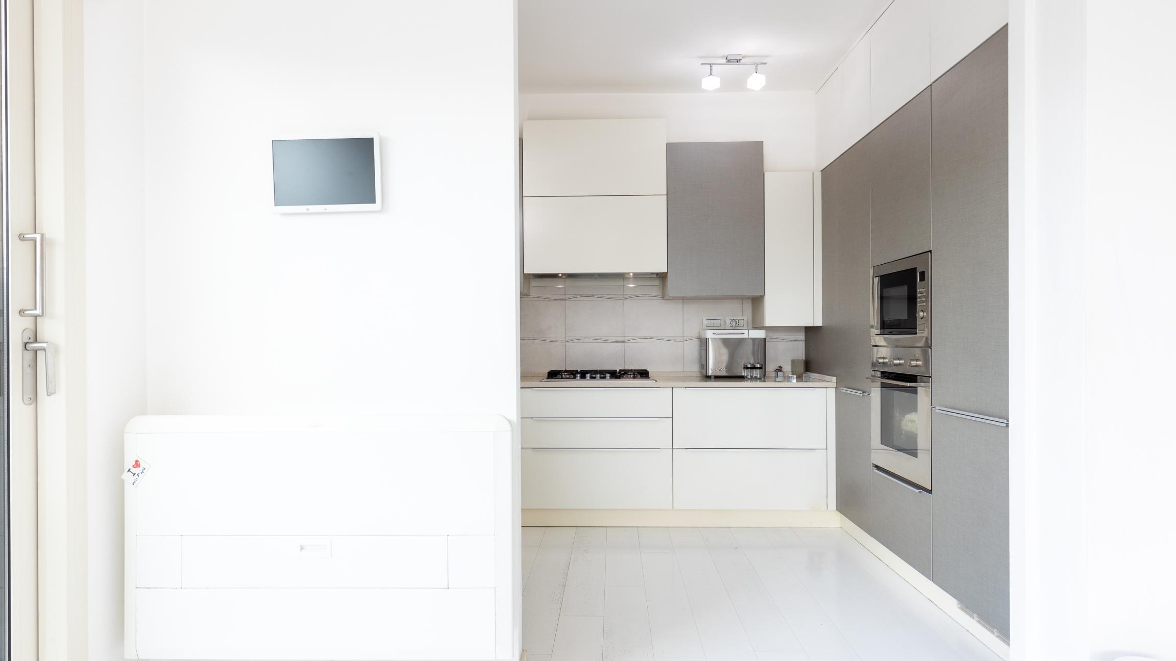L'appartamento si sviluppa su un unico livello ed è composto da un’ampia zona giorno con cucina open space con accesso diretto alla grande terrazza abitabile che ne circonda i tre lati, ideale per pranzi all’aperto, momenti di relax o per creare una vera e propria zona living esterna.