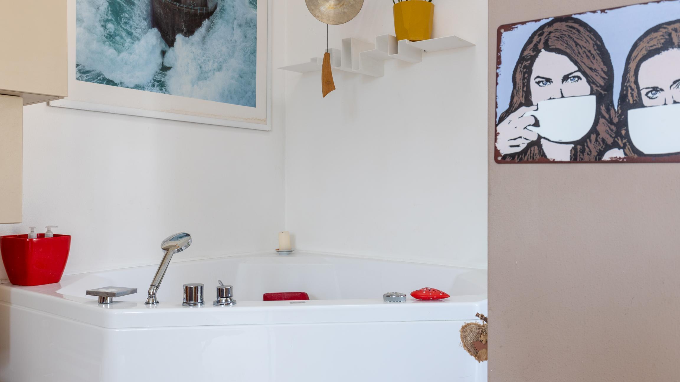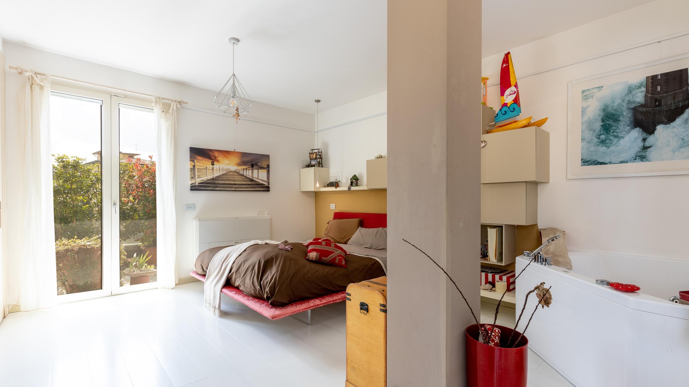 La zona notte comprende una camera matrimoniale con bagno privato en suite con doccia e vasca idromassaggio; una seconda camera e un secondo bagno.