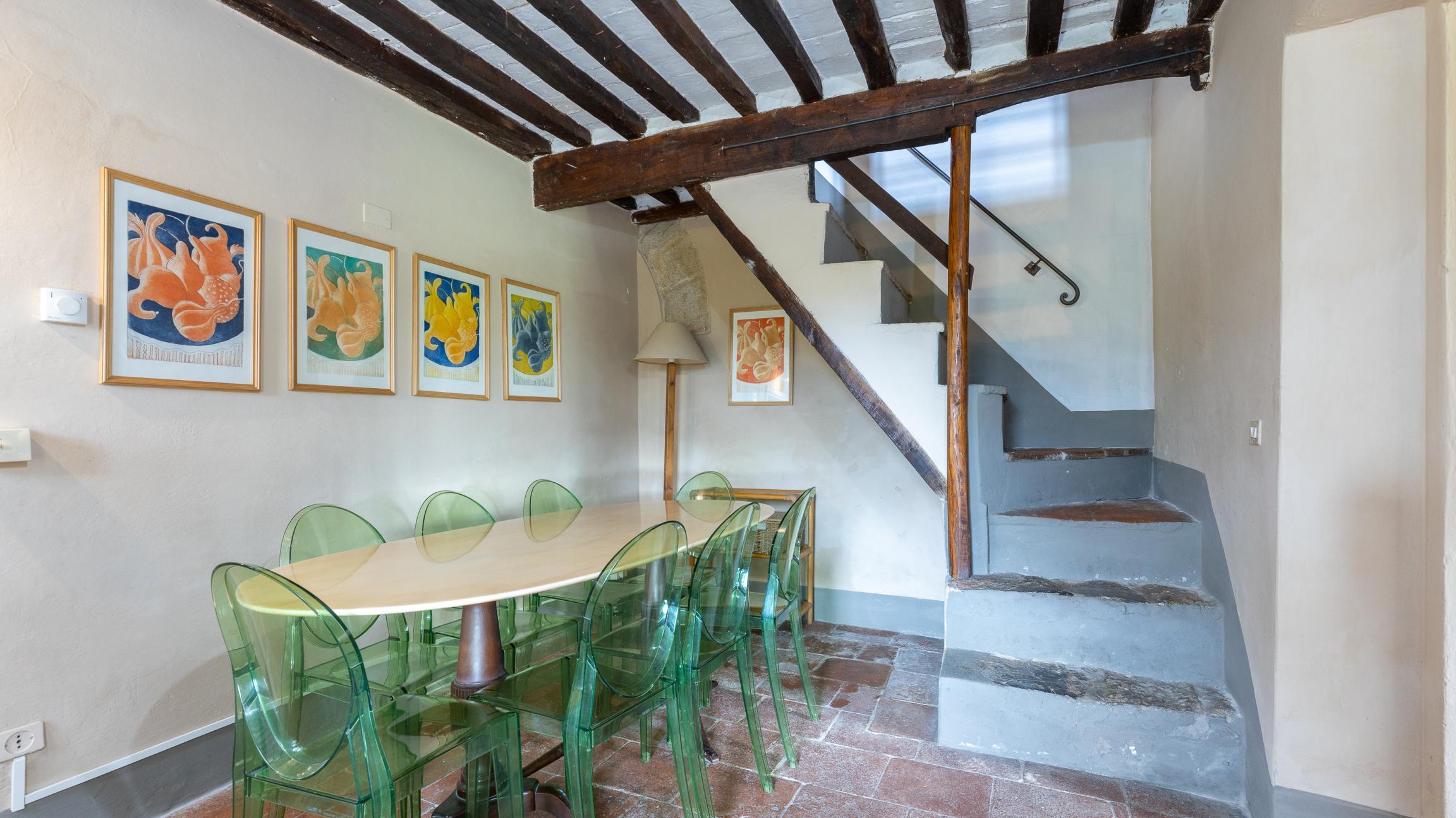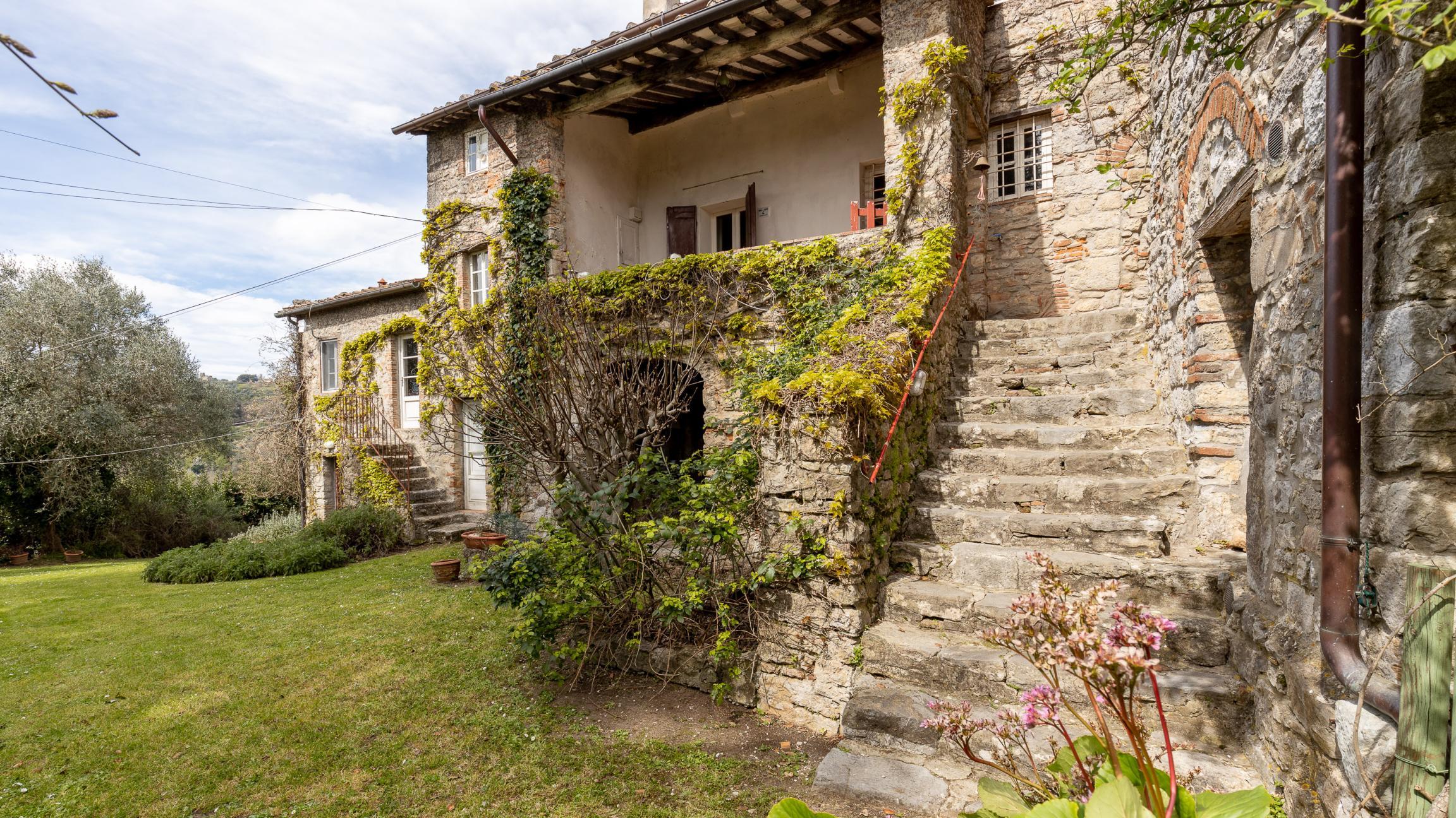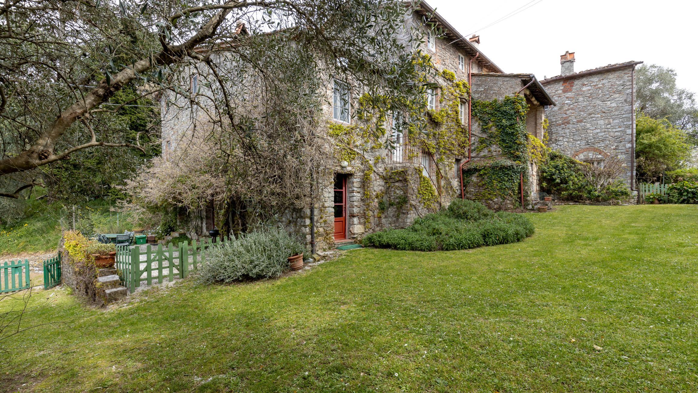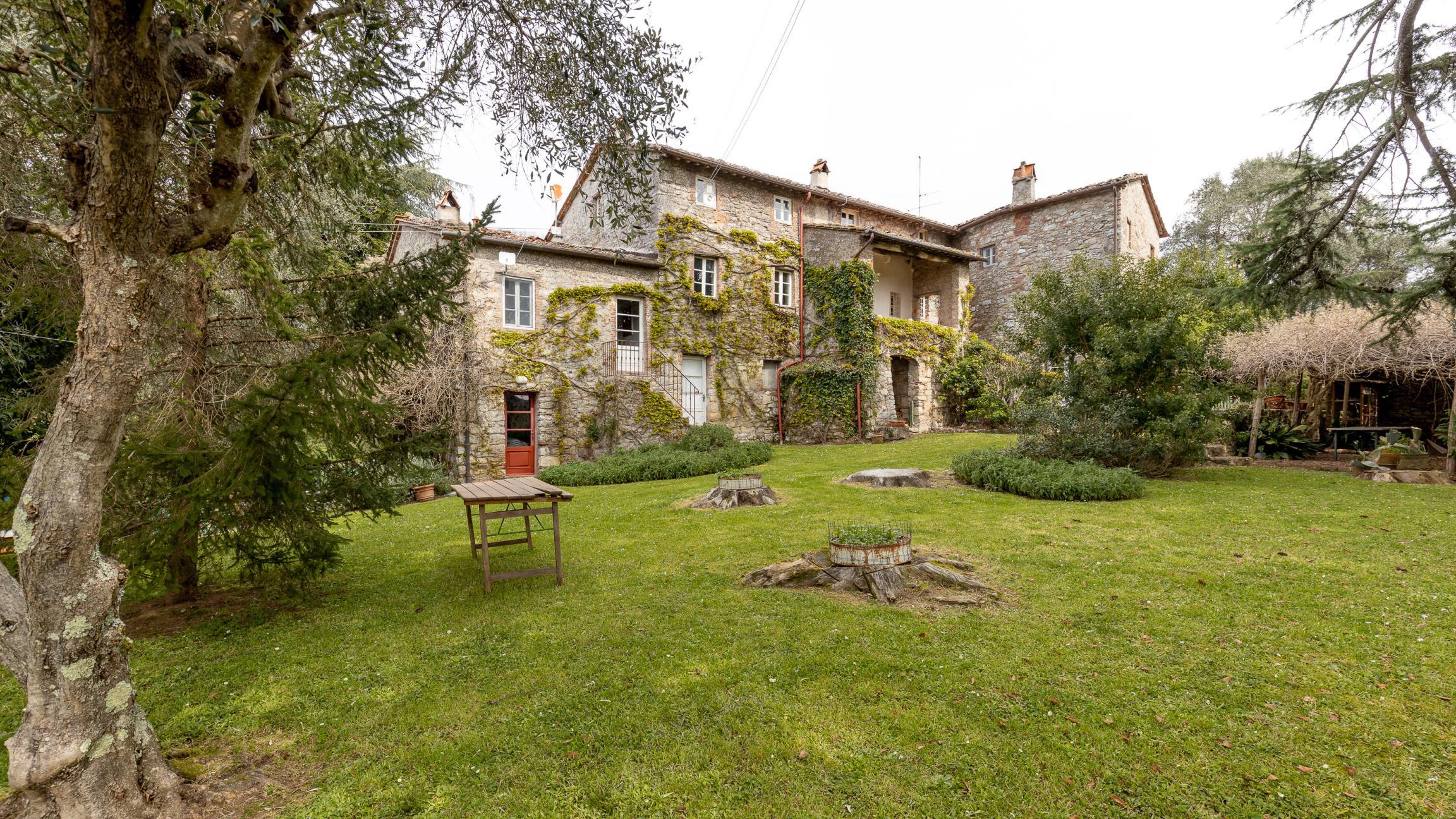 Colline di Camaiore in località Orbicciano troviamo questo caratteristico casale in pietra suddiviso in tre unità oltre parte di fabbricato ad uso fienile. La struttura è molto articolata, ogni unità ha caratteristiche diverse e particolari. Tutto è autentico dai pavimenti in mezzane di cotto ai soffitti con travi in legno e mezzane, le scale interne , i terrazzini o il bel patio d'ingresso, e poi angoli in ngiardino con pergolati di glicine. Oltre al giardino frontale con una bellissimo cedro del Libano e un'aiuola di piante aromatiche, c'è un bellissimo uliveto. Le tre unità possono anche essere vendute separatamente visto che sono indipendenti . Attualmente solo l'unità finale viene adibita agli affitti turistici. Potrebbe essere ideale per più famiglie che vogliono condividere una vita in collina ed essere al tempo stesso indipendenti.