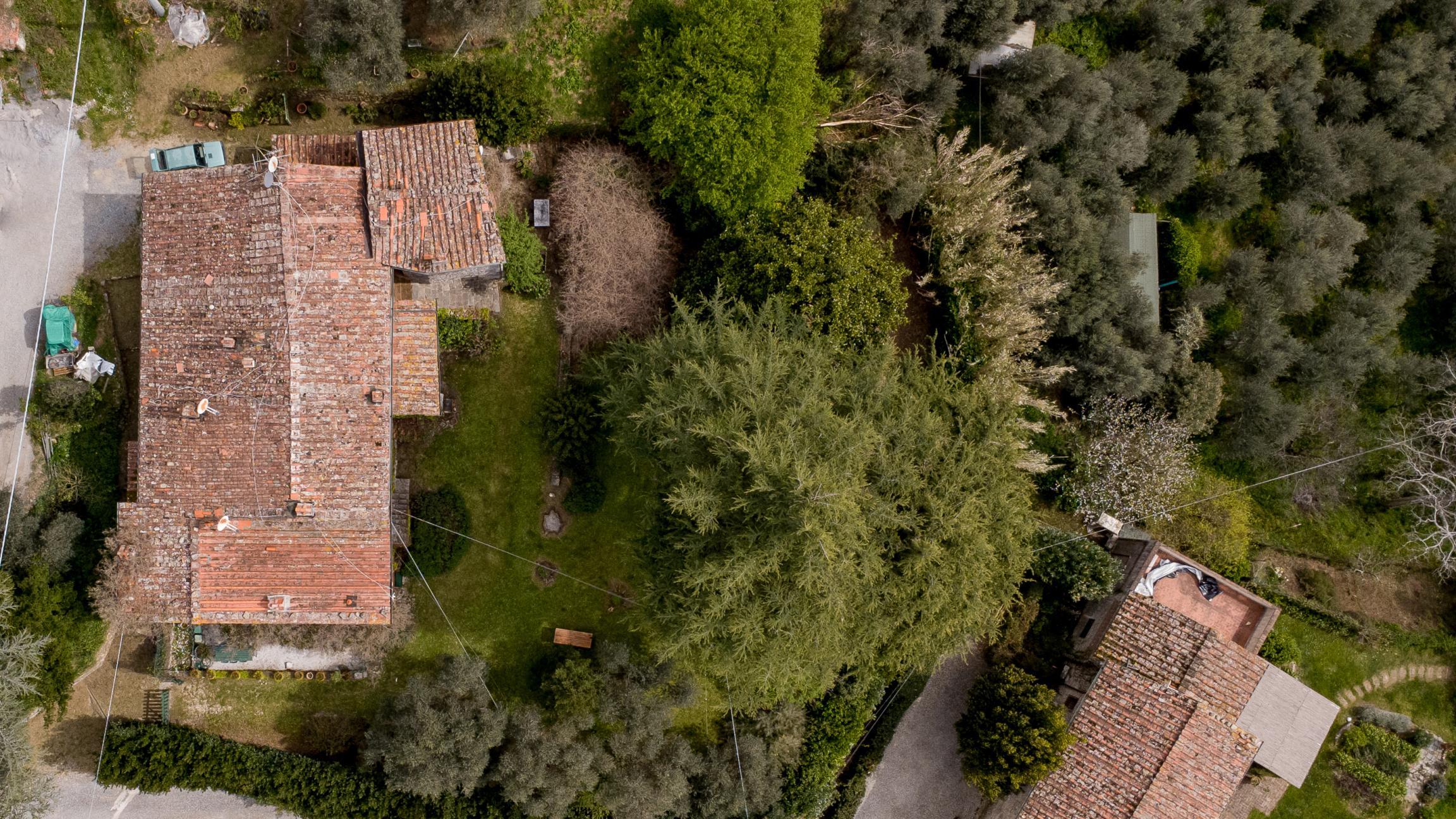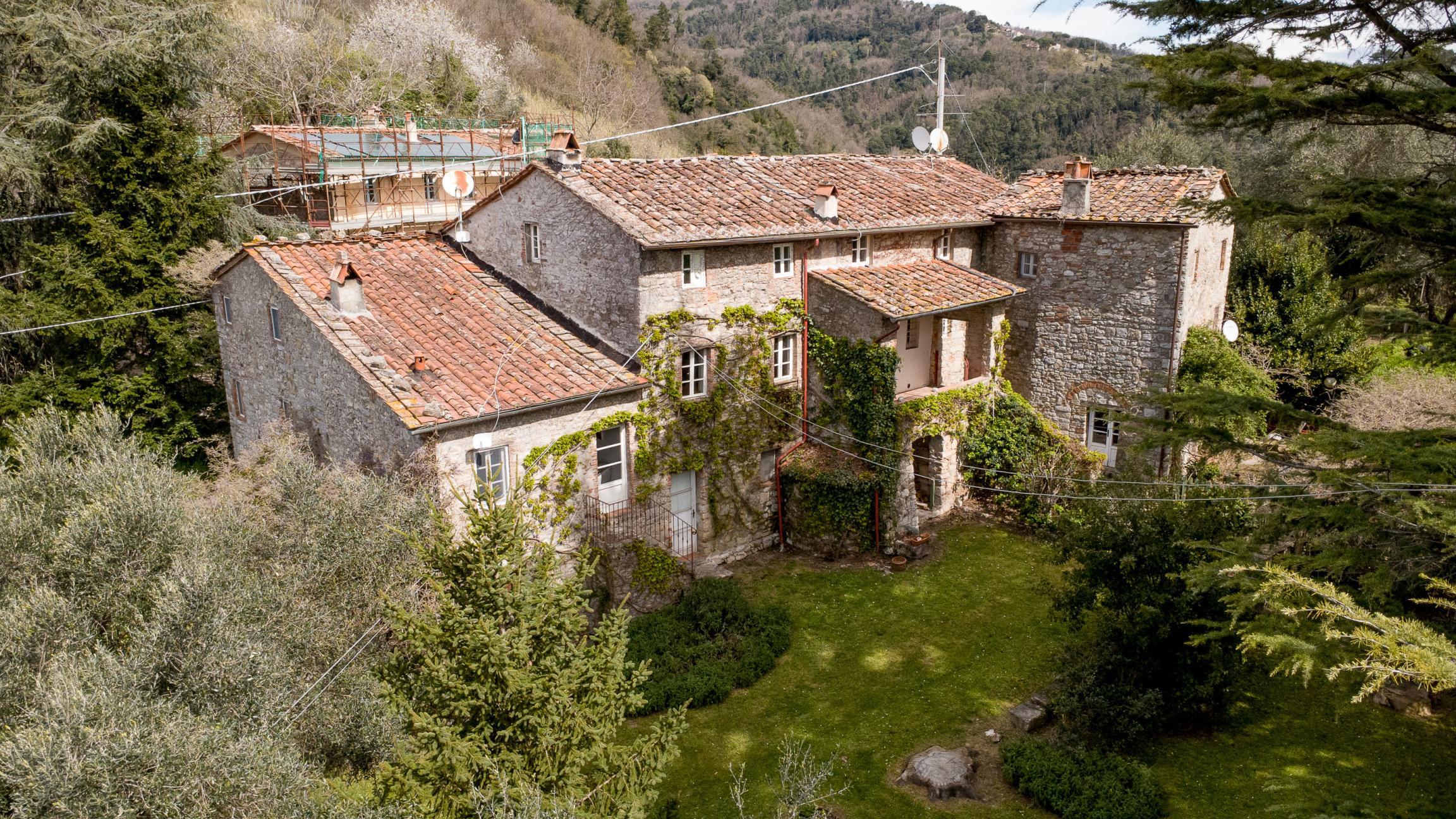 Colline di Camaiore in località Orbicciano troviamo questo grande casale in pietra con giardino ed uliveto