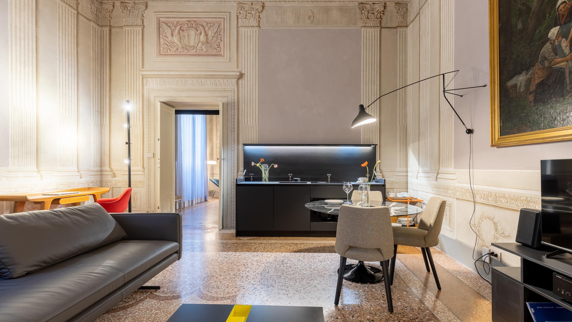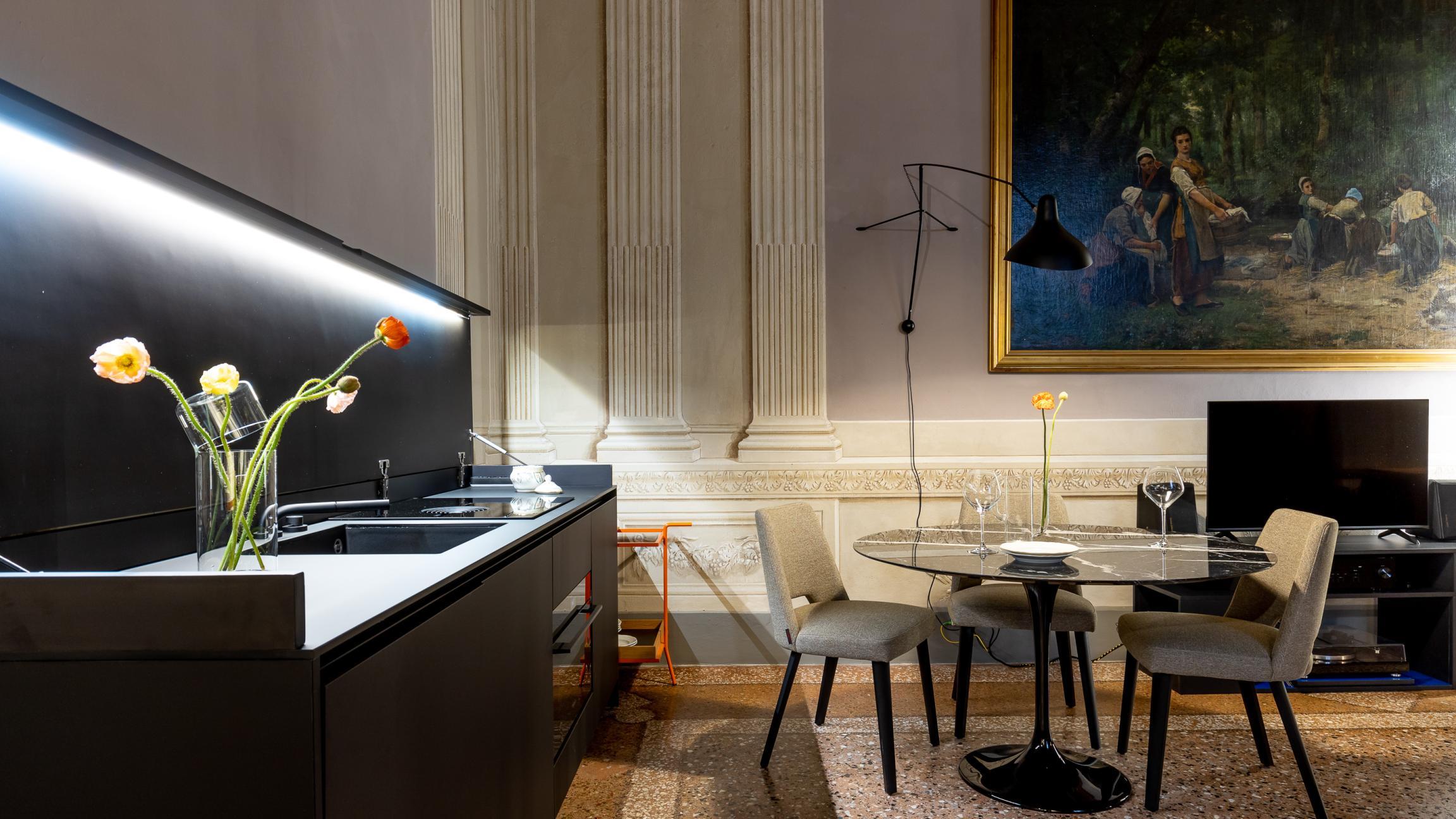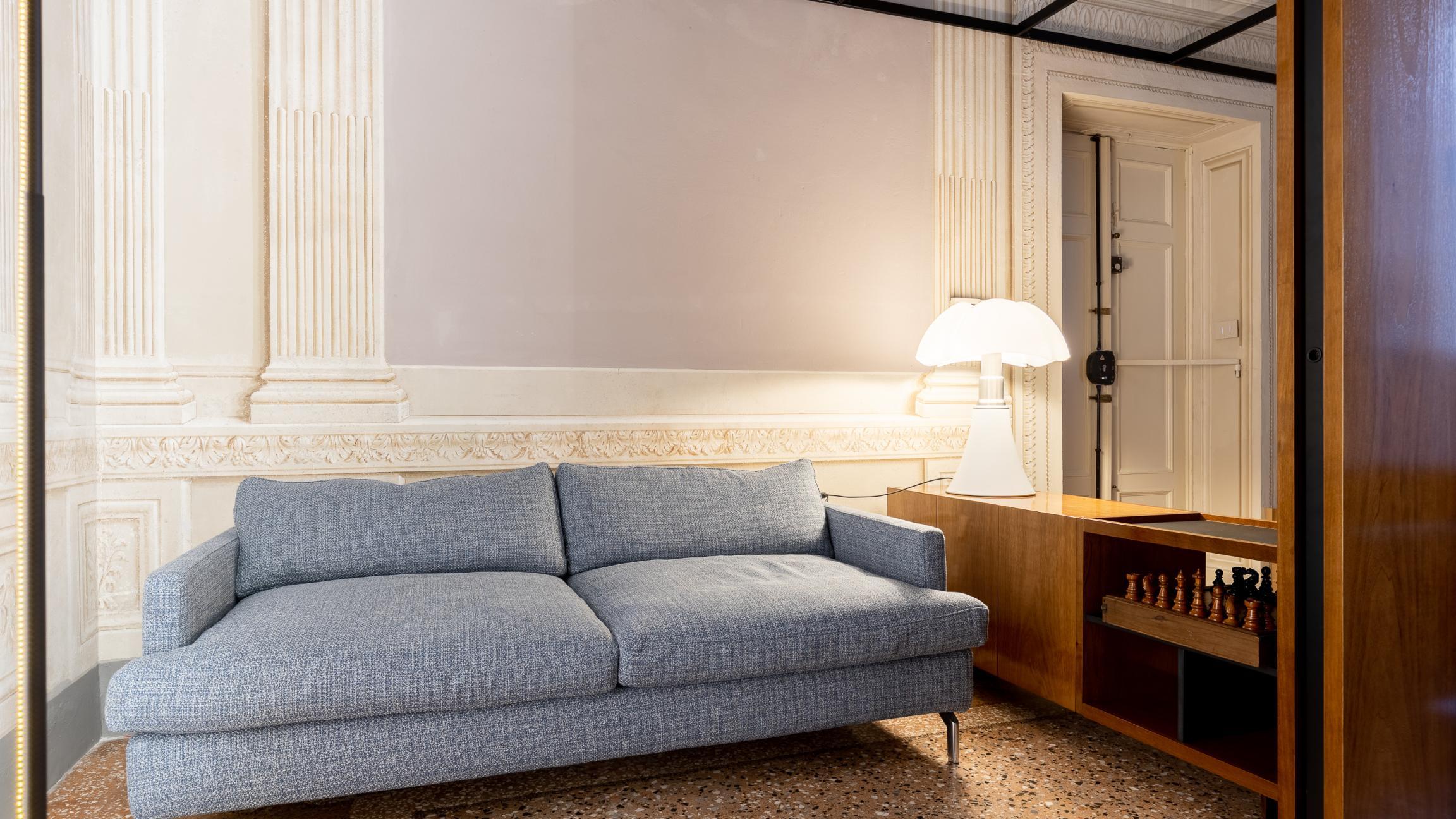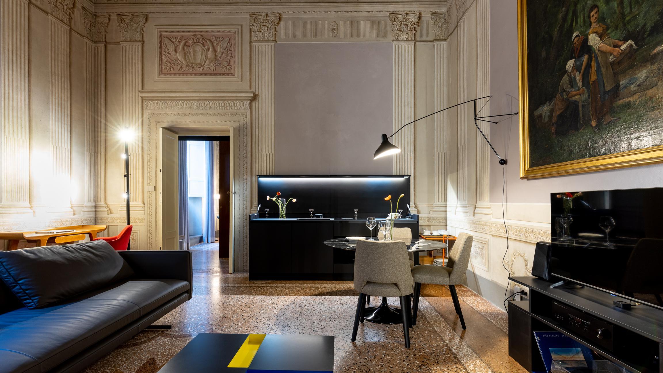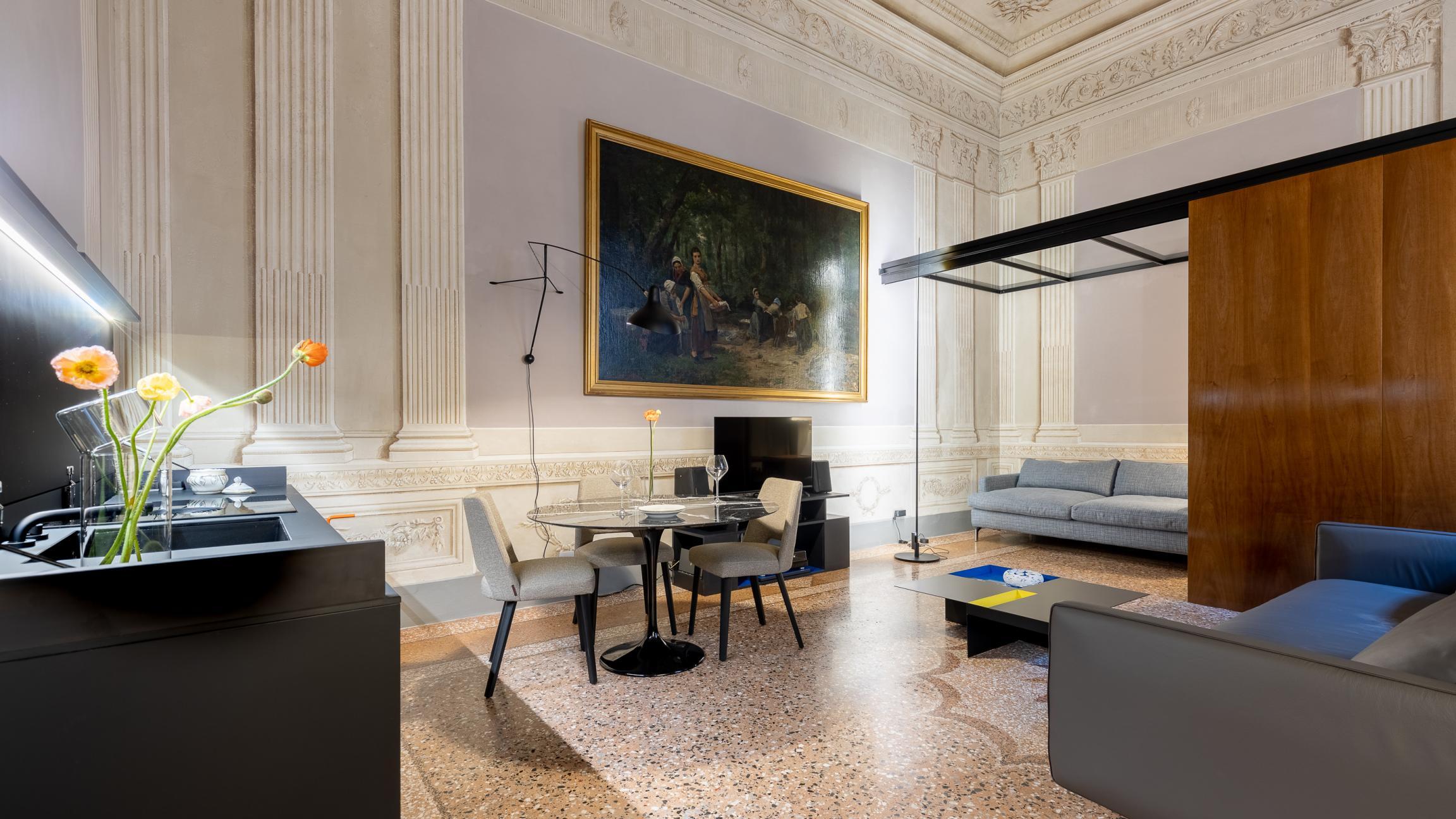 Un’operazione interessante che parte da un’idea a metà tra l’abitazione e uno showroom, in un magnifico contesto con affreschi, una loggia monumentale ed un palazzo da favola.
