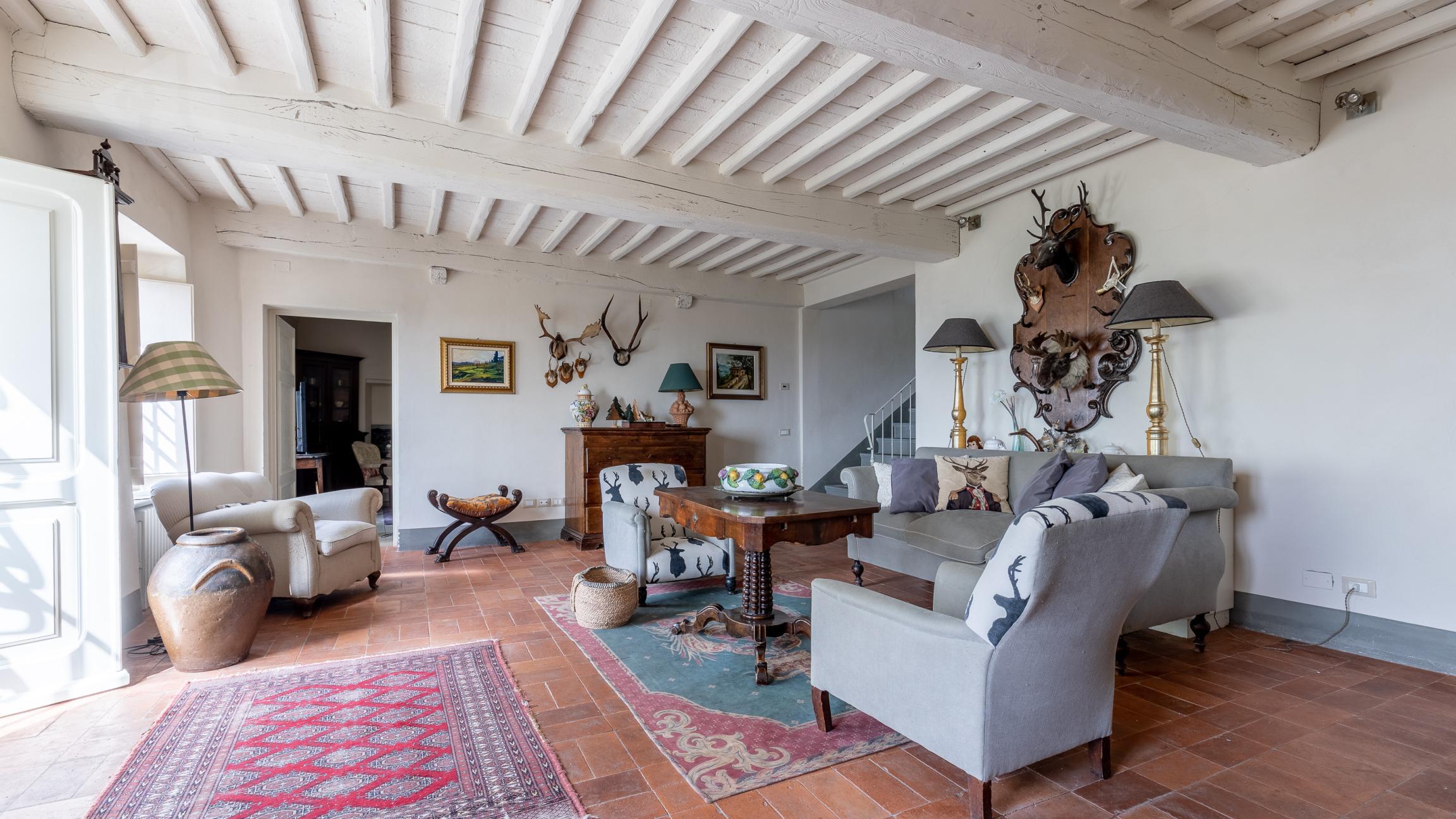 In una delle zone più prestigiose delle colline lucchesi, immerso tra vigneti ed oliveti, troviamo questo splendido rustico completamente ristrutturato. Giunti di fronte all'immobile possiamo apprezzare la facciata in pietra meticolosamente restaurata e l'imponente scala che ci conduce sino alla soglia d'ingresso. Una volta varcata quest'ultima ci accoglie il grande soggiorno con pavimento in cotto e soffitto realizzato con travi e mezzane dipinte di bianco, per rendere ancor più luminoso e contemporaneo questo splendido ambiente. Dal soggiorno accediamo al salotto al centro del quale troviamo un caminetto in marmo bianco, fulcro delle serate invernali all'insegna della convivialità. Uscendo dal salotto, sulla sinistra, troviamo la sala da pranzo arricchita da un pavimento in assi di legno dipinte a fasce bianche e rosse, che donano un tocco di eleganza alla stanza. Proseguendo troviamo la cucina in tipico stile toscano ,con piano di lavoro e lavello in marmo bianco, dalla quale accediamo ad una terrazza pavimentata che domina sul giardino. Completa il piano primo un grazioso bagno. Mediante una grande scala in pietra di Matraia accediamo al piano secondo dove troviamo la zona notte : 4 splendide camere tutte dotate di bagno privato e aria condizionata. Una menzione speciale per la camera padronale di 20 mq con vista mozzafiato sugli oliveti e vigneti sottostanti. Ridiscesa la scala in pietra ci troviamo di fronte alla terrazza panoramica che domina sull'intera vallata, un luogo ideale per degustare un calice di vino ammirando il favoloso scenario che circonda il rustico. Il terreno di proprietà è di circa 8000 mq, in gran parte ad oliveto. Un'oasi di pace dove vivere senza rinunciare al comfort.