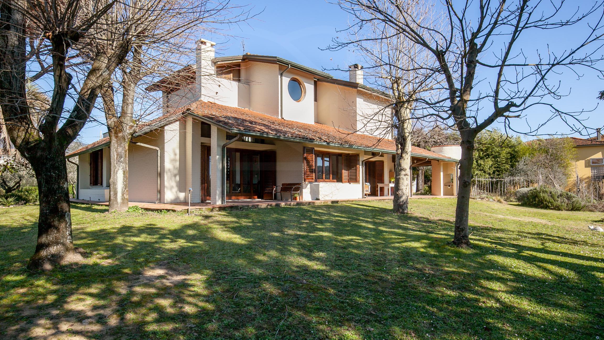 Siamo a Lucca, nella frazione di Gragnano a pochi km dalla città immersa nel parco privato di 4.000 mq vicino ai principali servizi, villa di particolare architettura ristrutturata sotto la direzione di un noto architetto negli anni '70 mantenendo un suo carattere elegante e minimalista con ampi spazi da vivere.