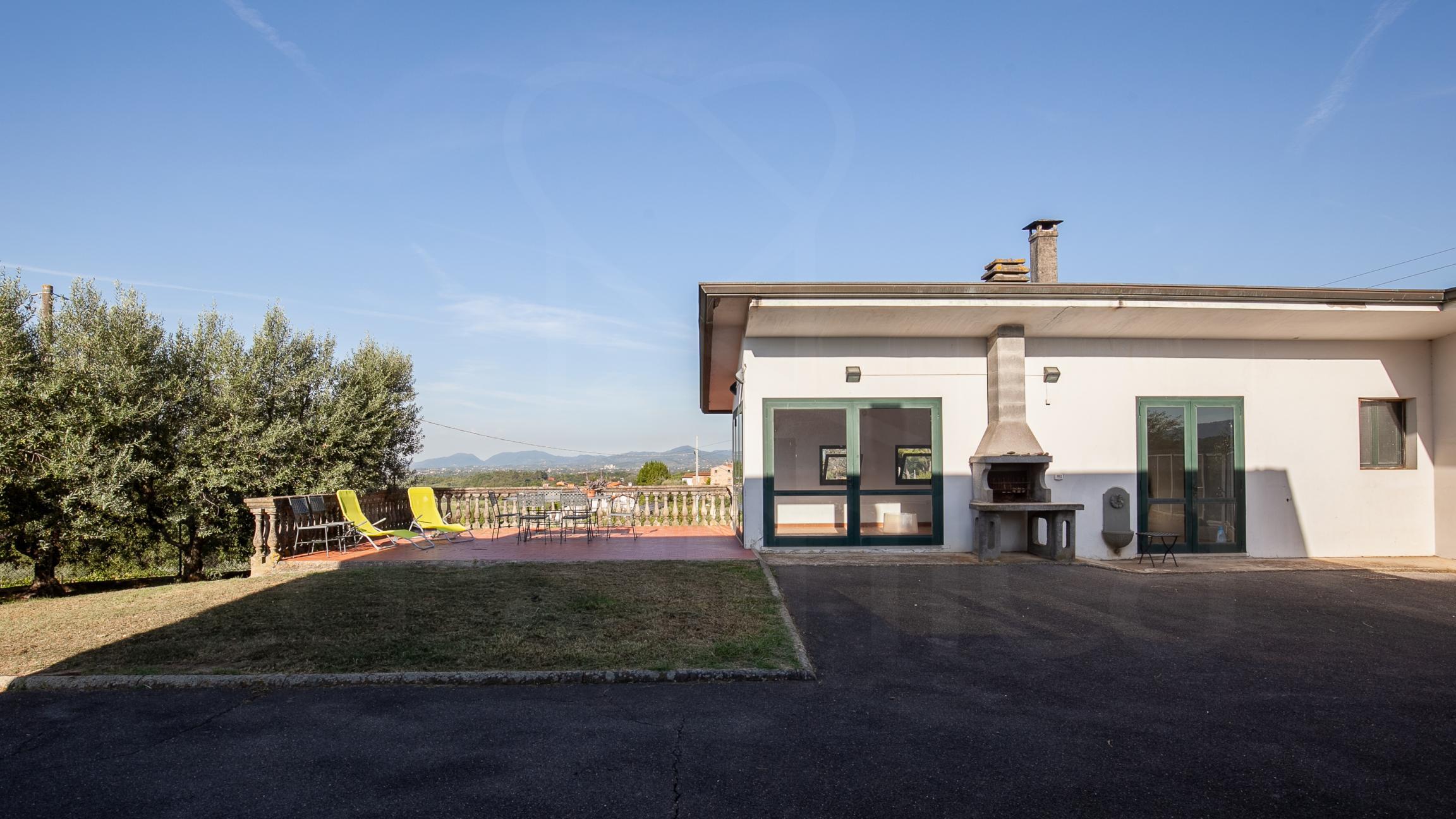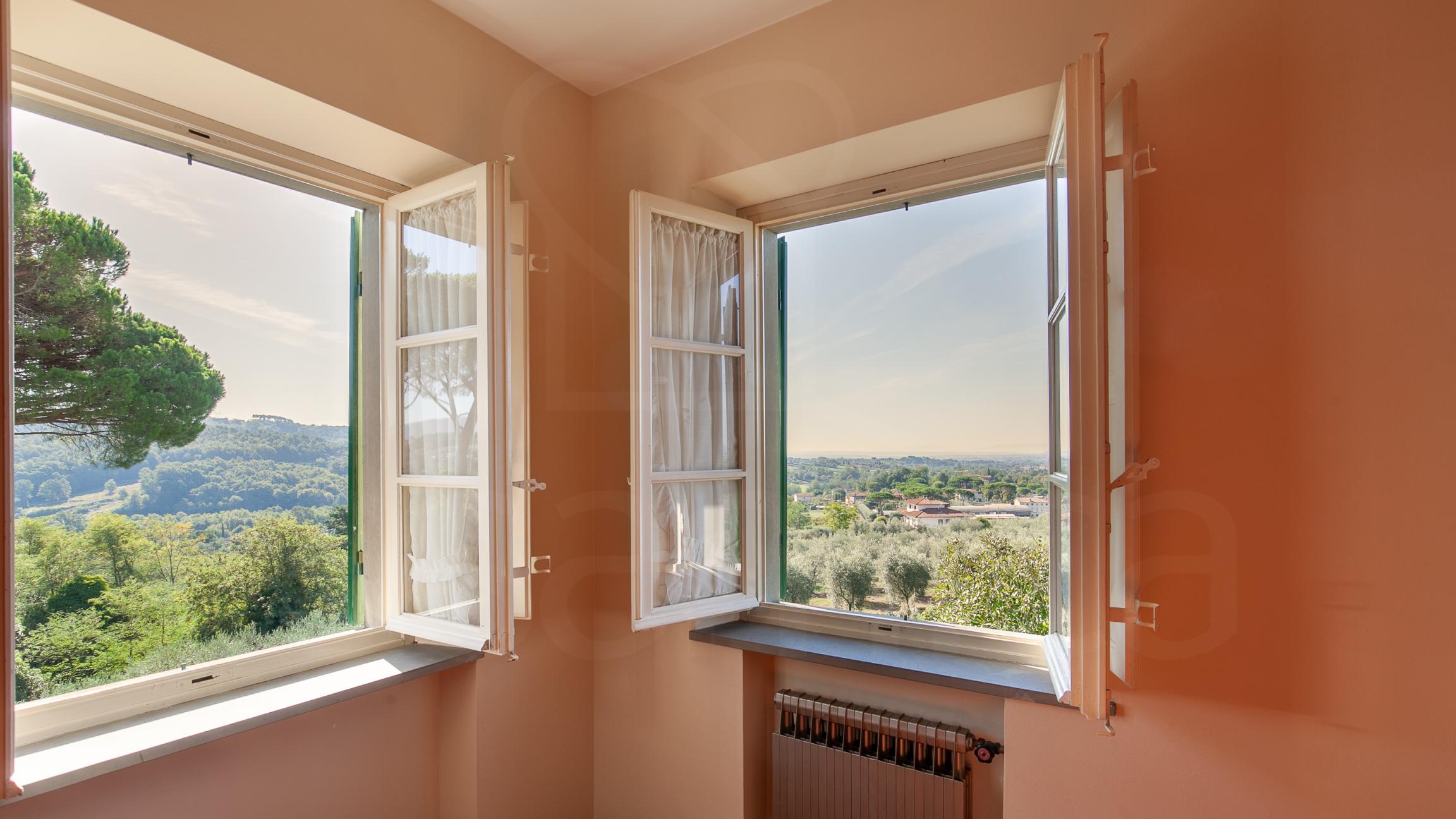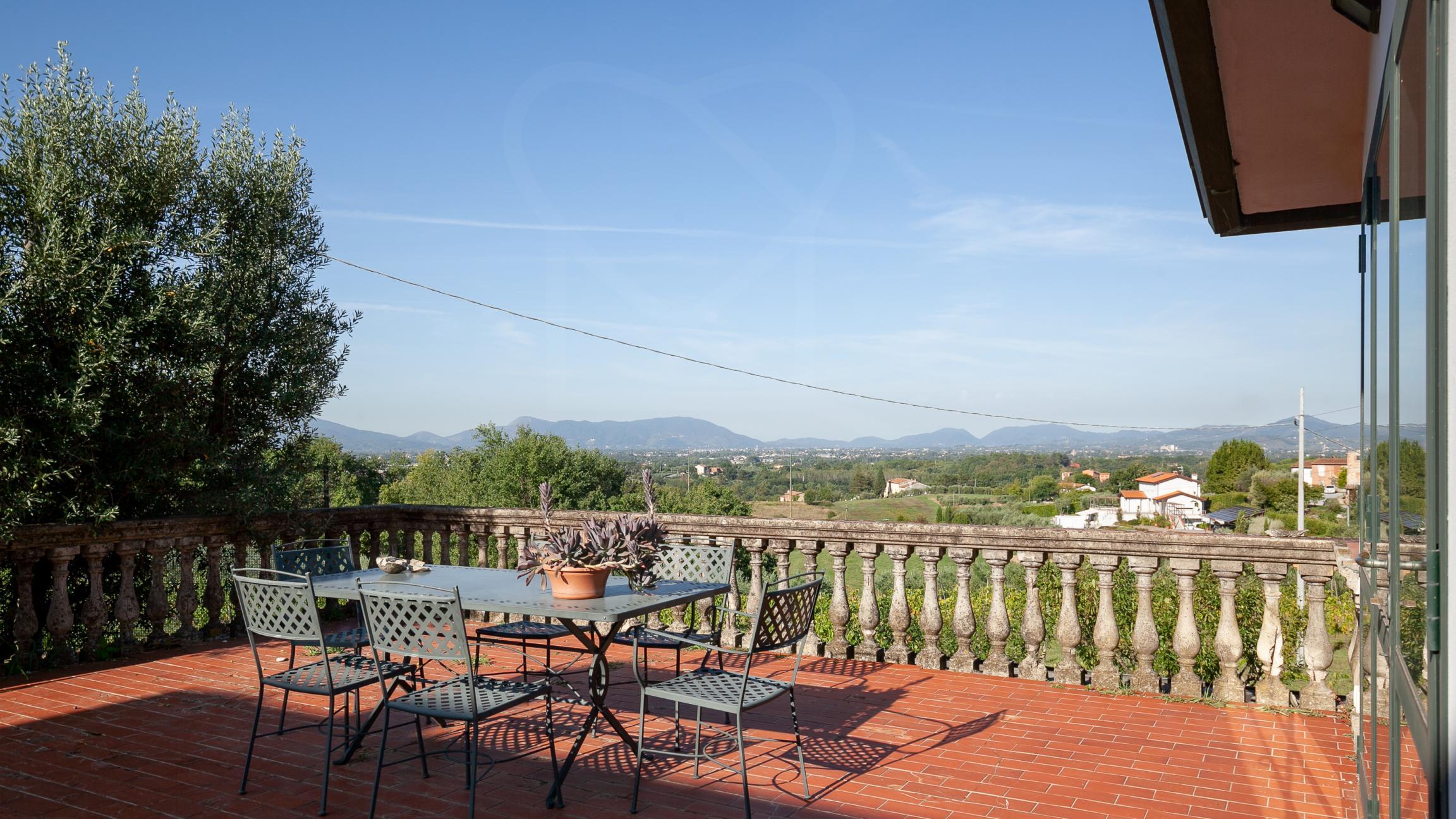 In posizione dominante con vista a 360° sulle colline e sulla città di Lucca troviamo questa imponente villa padronale di circa 1180mq con dependance e piccola rimessa. La villa si sviluppa su tre piani tutti abitabili, le stanze sono tutte ampie e molto luminose e salendo i piani la vista migliora sempre più. La villa è in ottime condizioni di manutenzione e l'ultima ristrutturazione risale agli inizi degli anni '70. I pavimenti sono in cotto levigato in tutta la villa. A piano terra troviamo ampio ingresso, due grandi sale di cui una con camino monumentale, cucina , dispensa, 2 saloni, 2 bagni e vari locali pluriuso, salendo al piano primo ci troviamo di fronte un salone con tre finestre, ampio disimpegno,5 camere , 4 bagni e rip.; salendo al secondo piano abbiamo 4 camere e 4 bagni, studio, e vanio pluriuso. La dependance si sviluppa al piano primo ed ultimo ed è composta da grande zona living con cucina a vista, 2 camere, bagno e 2 ripostigli. Adiacente alla dependance troviamo le cantine, il potrtico, la limonaia con bellissima terrazza panoramica, i due garages e il vecchio forno, oltre vari annessi. La villa è circondata da 3700mq di giardino e 16550mq di terreno prevalentemente ad uliveto.
